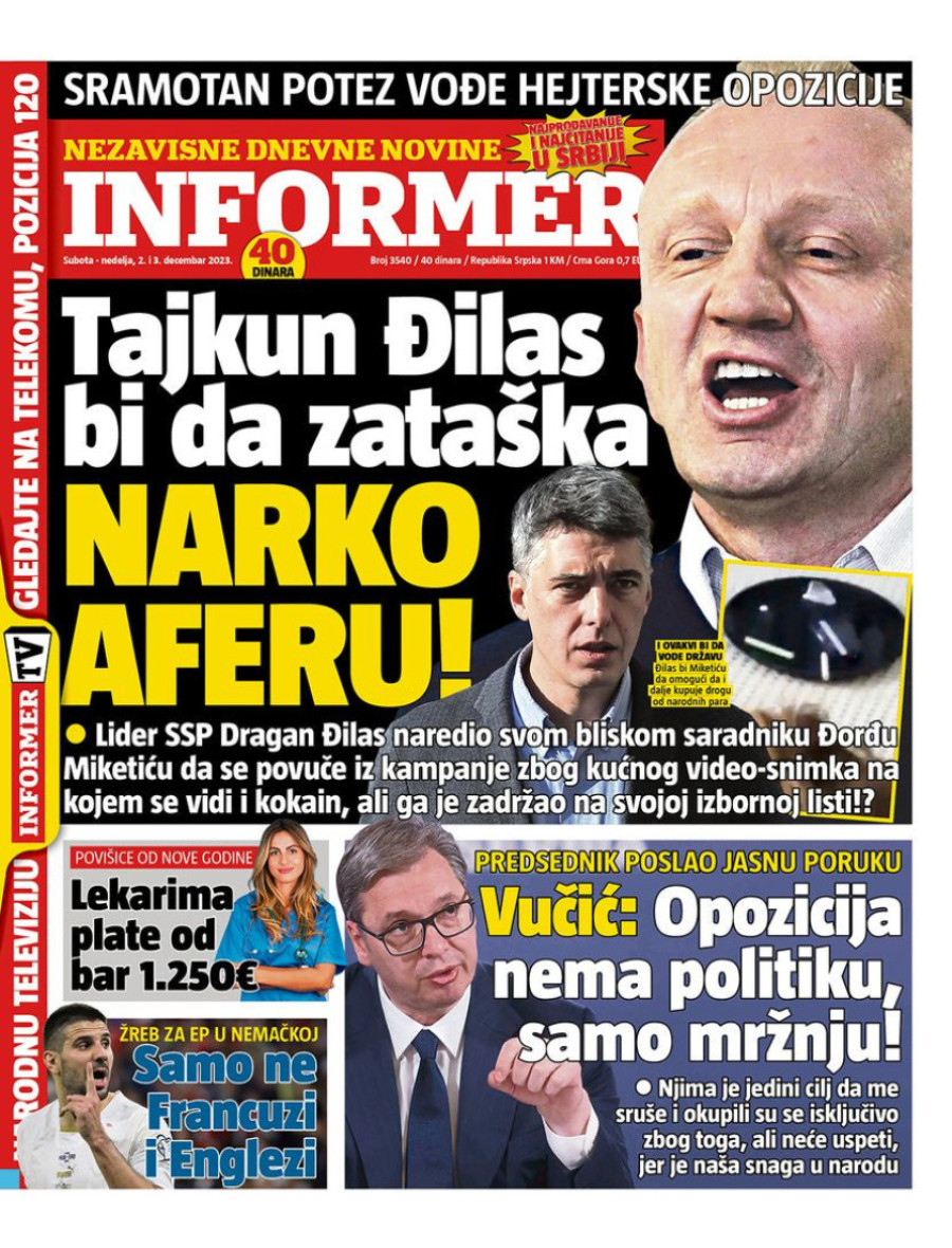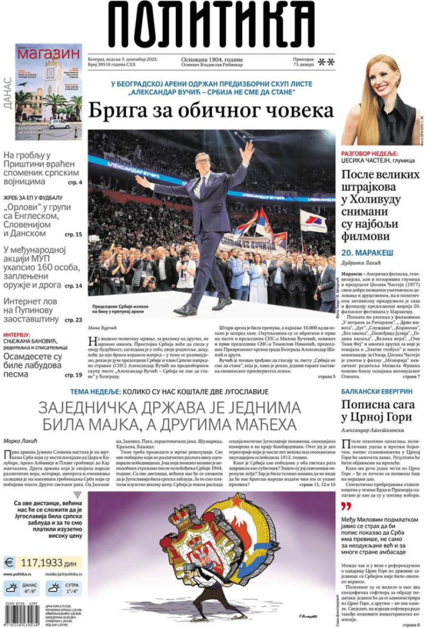 Naslovne strane dnevnih novina: Prelistavanje štampe za 3. decembar 2023. godine