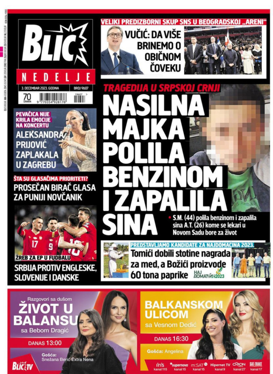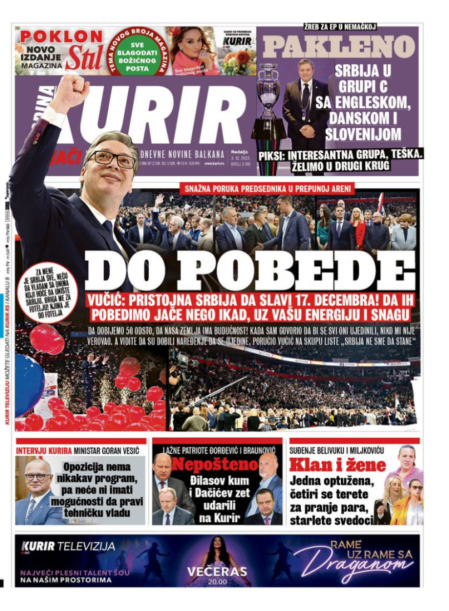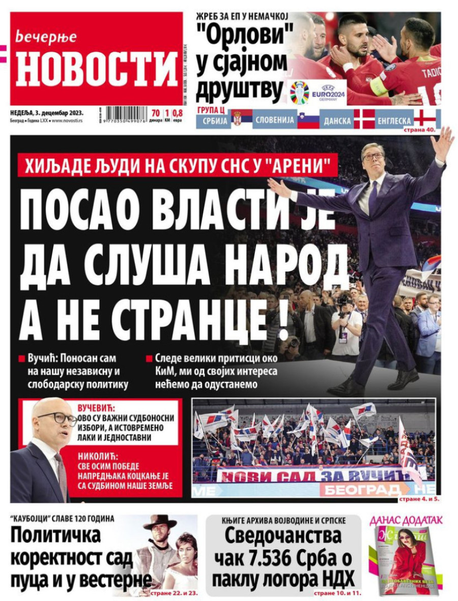 Dnevne novine u Srbiji za nedelju 3. decembar 2023. godine na naslovnim stranama najavljuju brojne aktuelne društveno-političke teme.