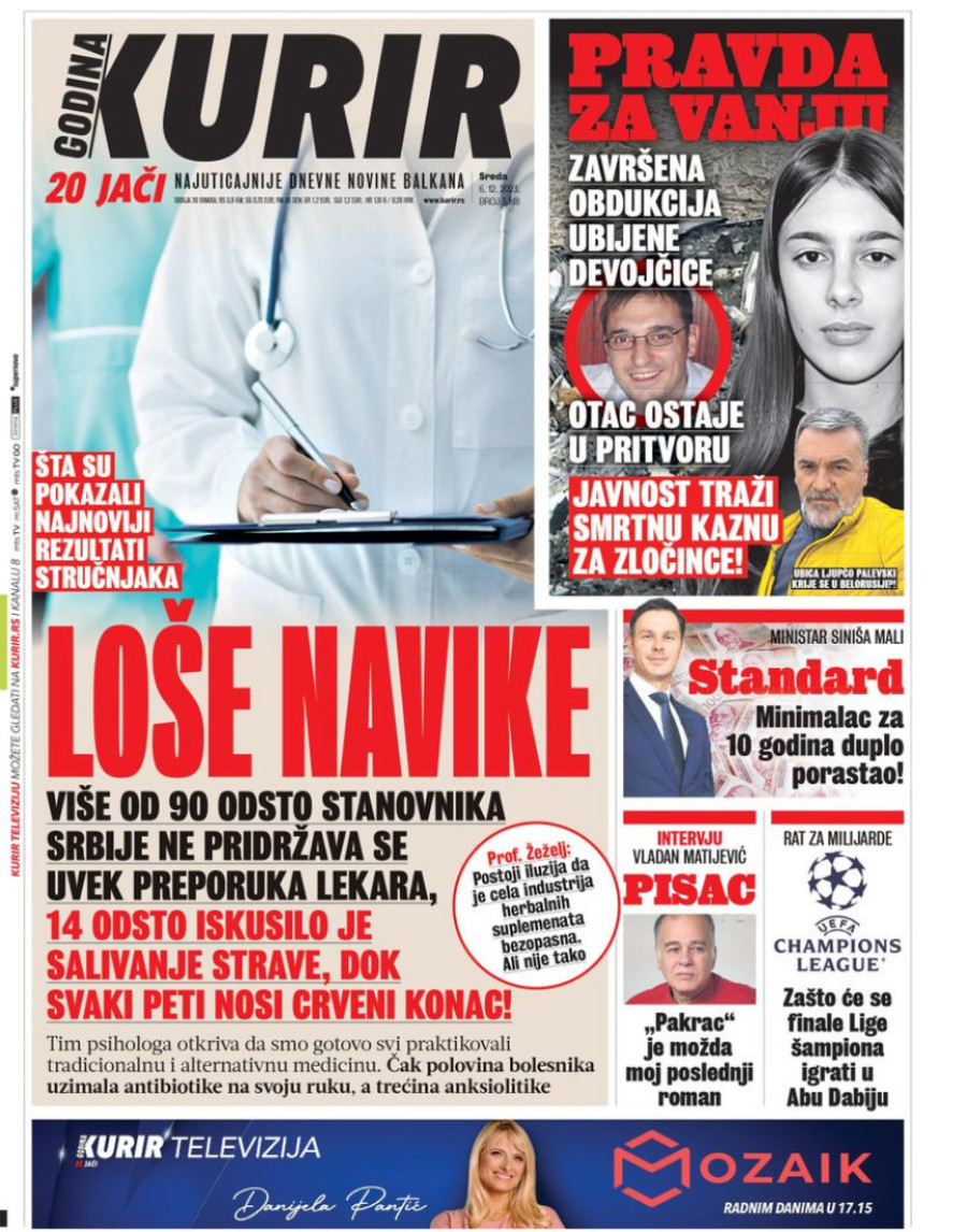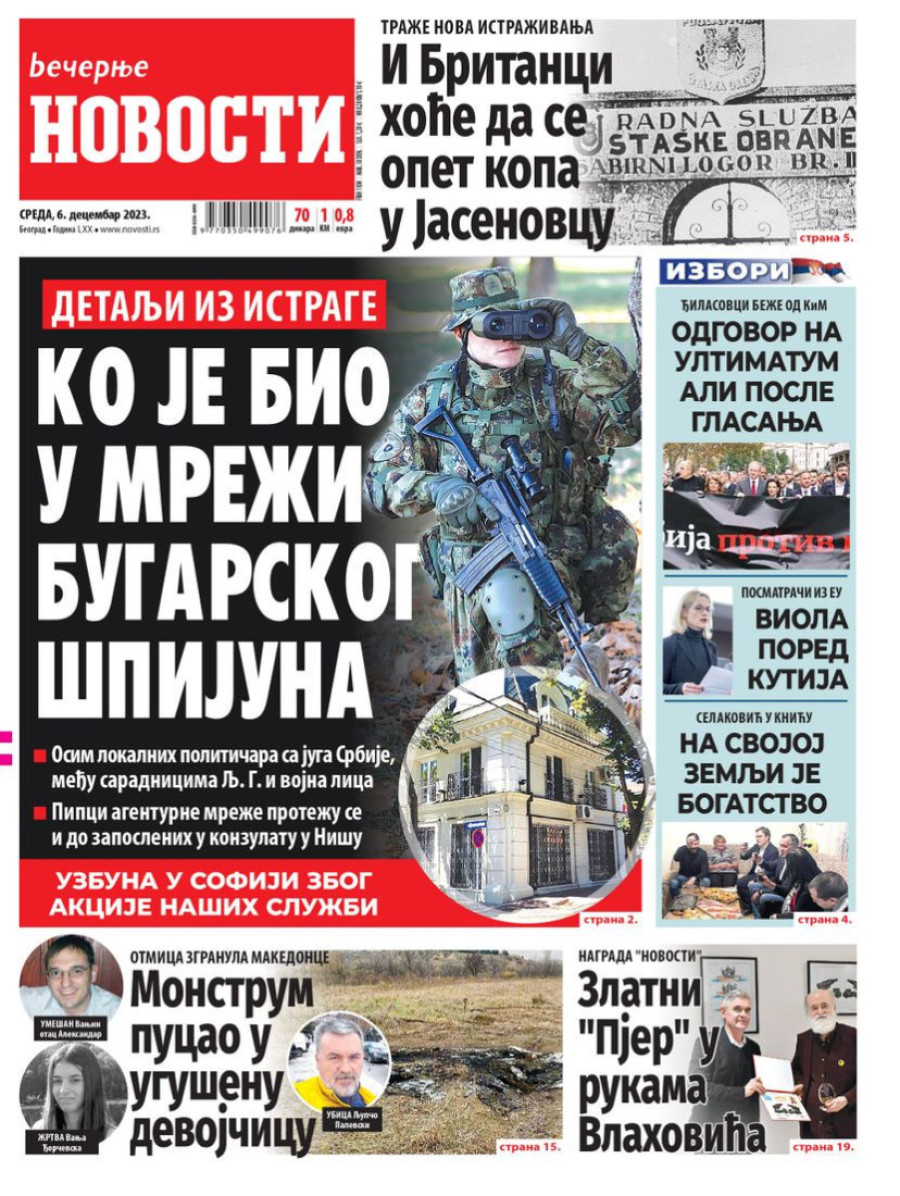 Dnevne novine u Srbiji za sredu 6. decembar 2023. godine na naslovnim stranama najavljuju brojne aktuelne društveno-političke teme.