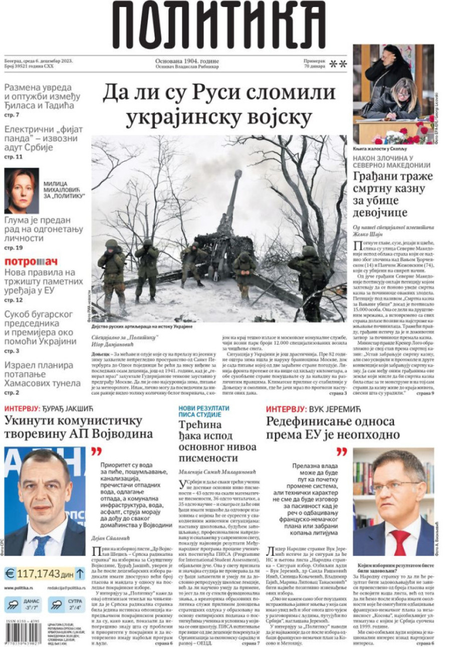 Naslovne strane dnevnih novina: Prelistavanje štampe za 6. decembar 2023. godine