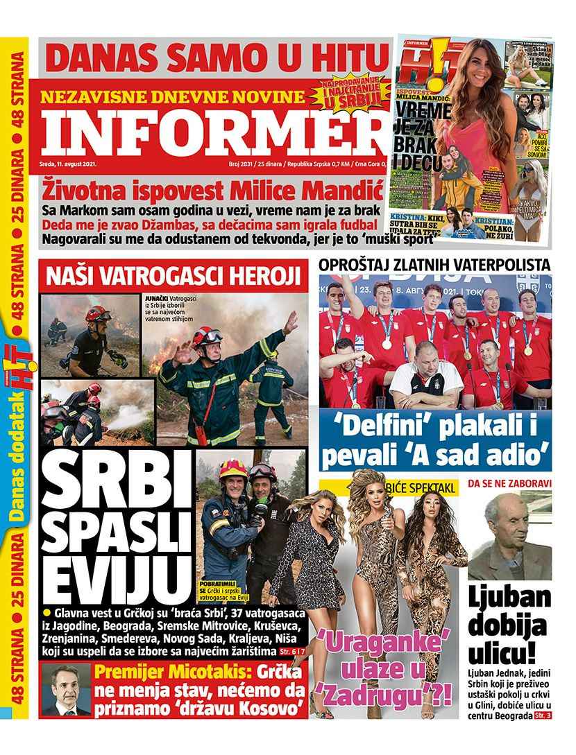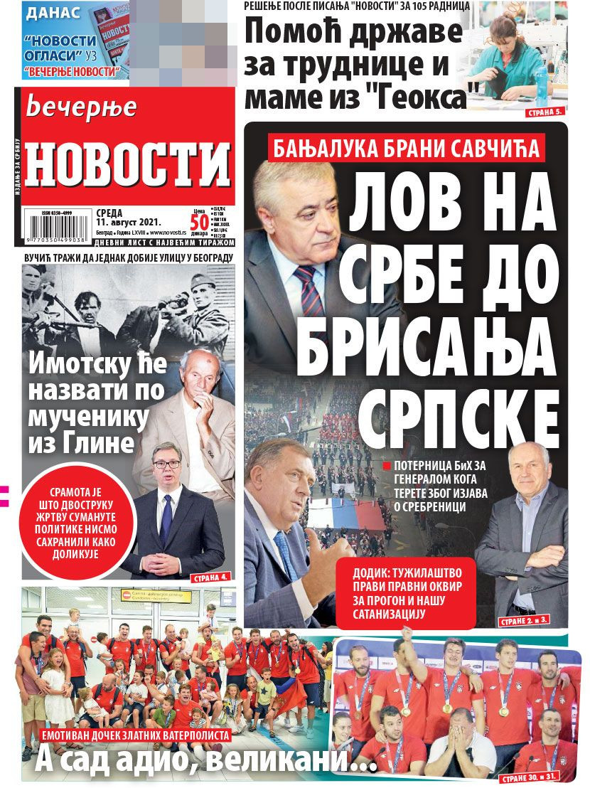 Dnevne novine u Srbiji za sredu, 11. avgust 2021. godine, na naslovnim stranama najavljuju brojne aktuelne društveno-političke teme i donose ekskluzivne priče.
