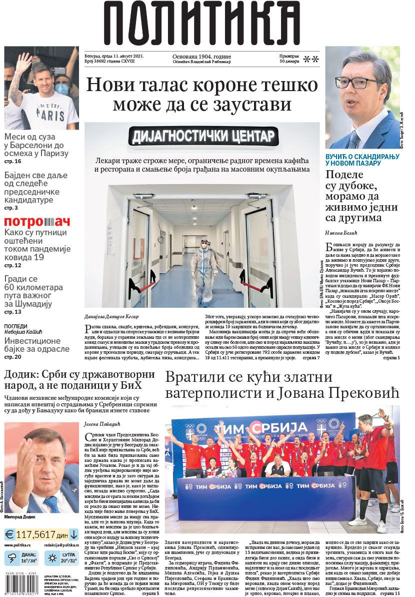 Prelistavanje štampe za sredu, 11. avgust 2021. godine