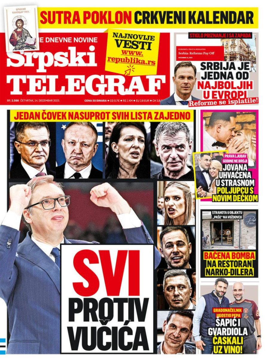 Naslovne strane dnevnih novina u Srbiji: Prelistavanje štampe za 14. decembar 2023. godine