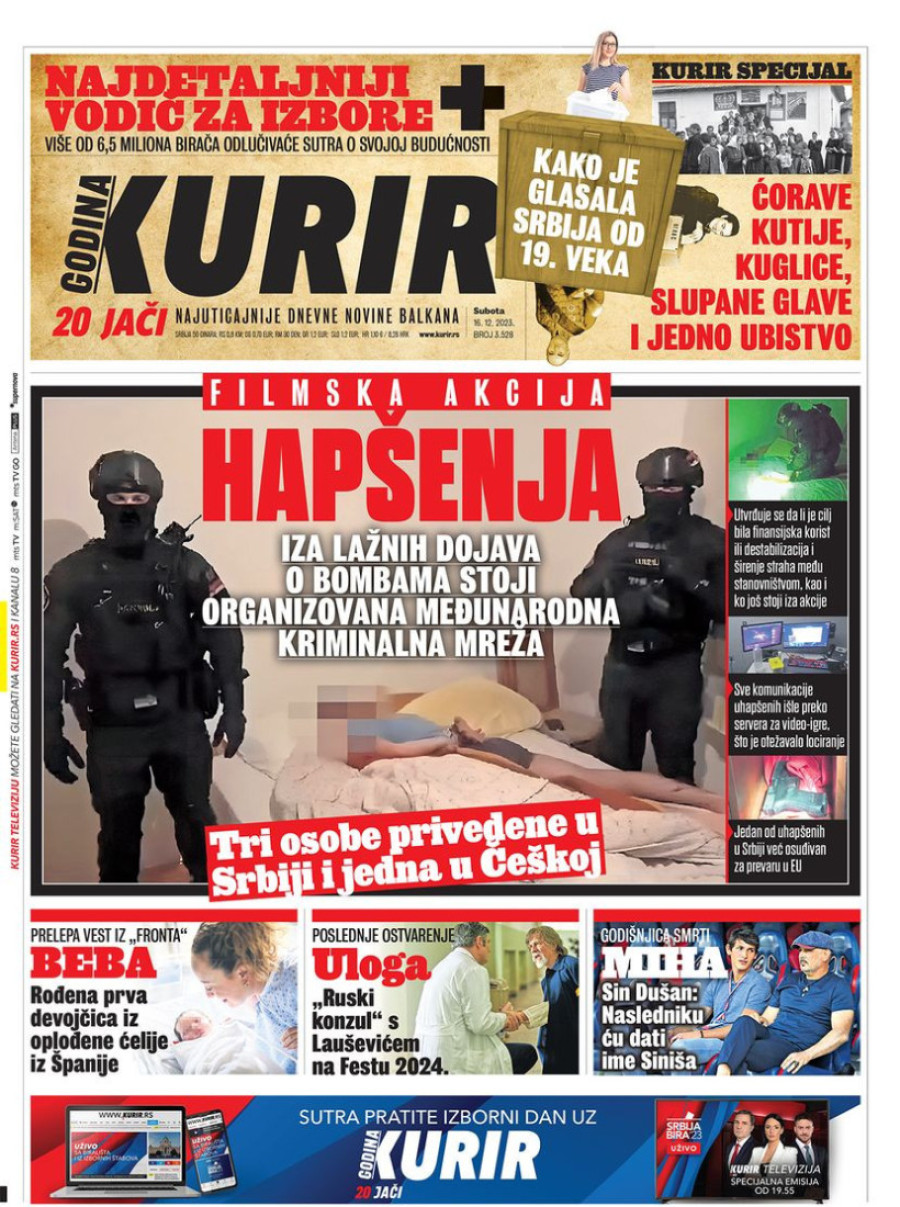 Dnevne novine u Srbiji za subotu 16. decembar 2023. godine na naslovnim stranama najavljuju brojne aktuelne društveno-političke teme.