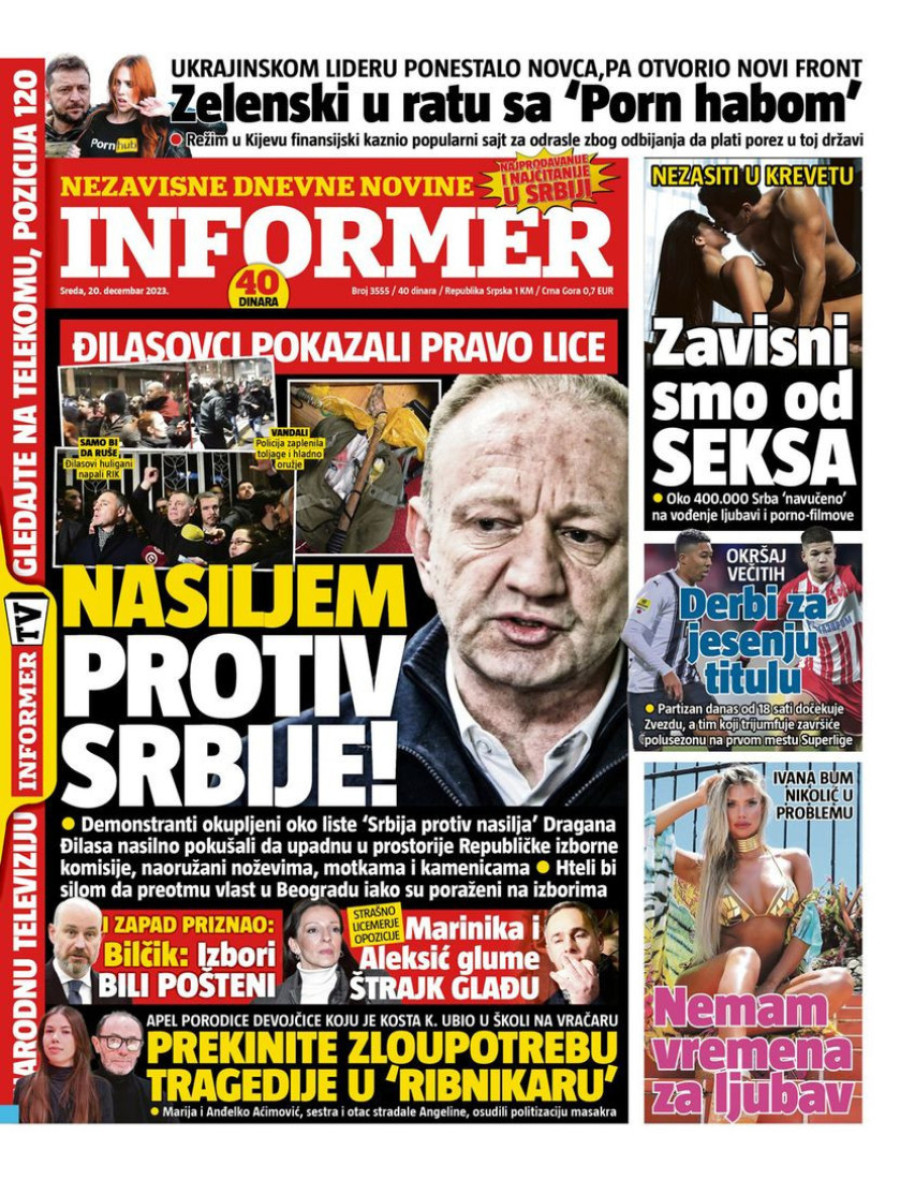 Naslovne strane dnevnih novina: Prelistavanje štampe za 20. decembar 2023. godine