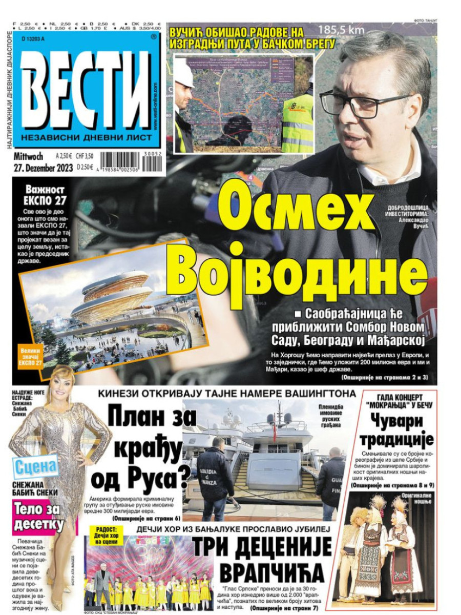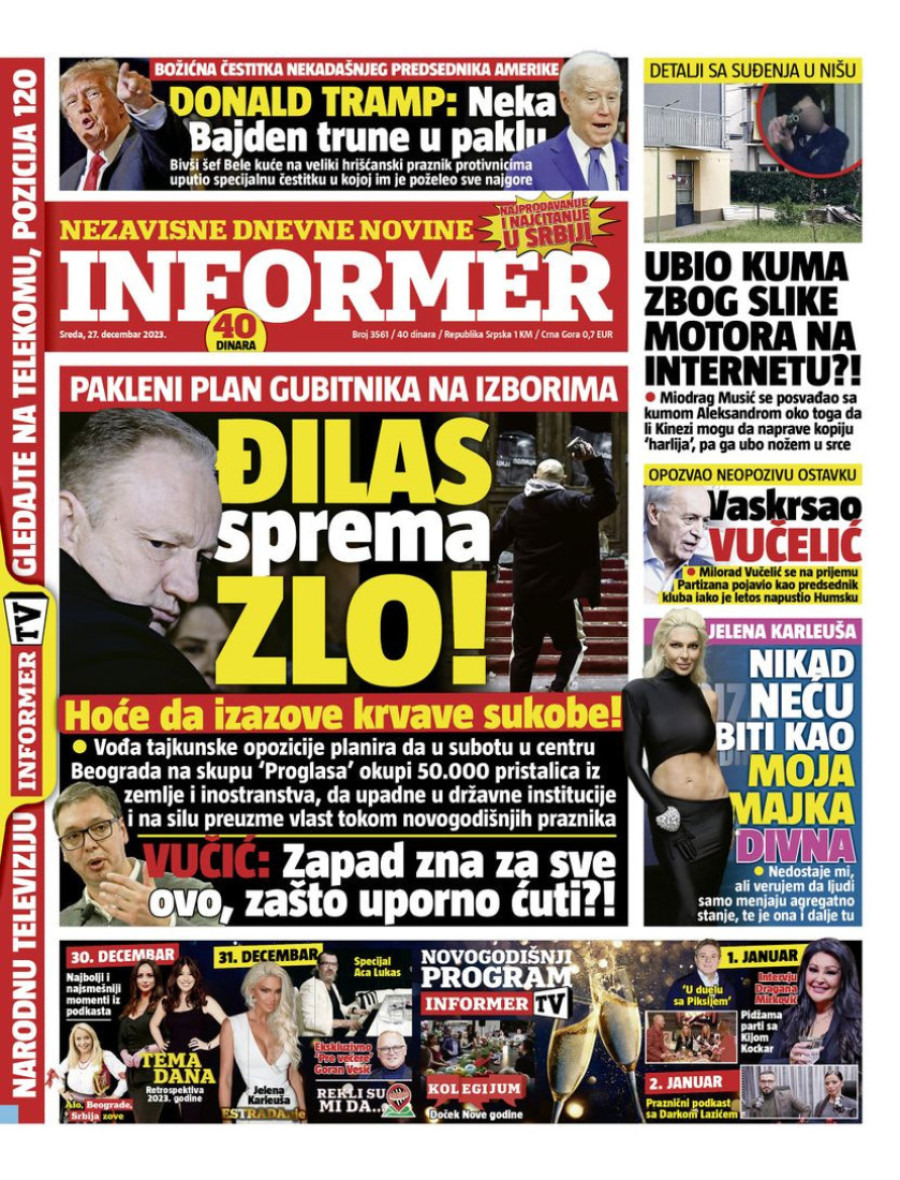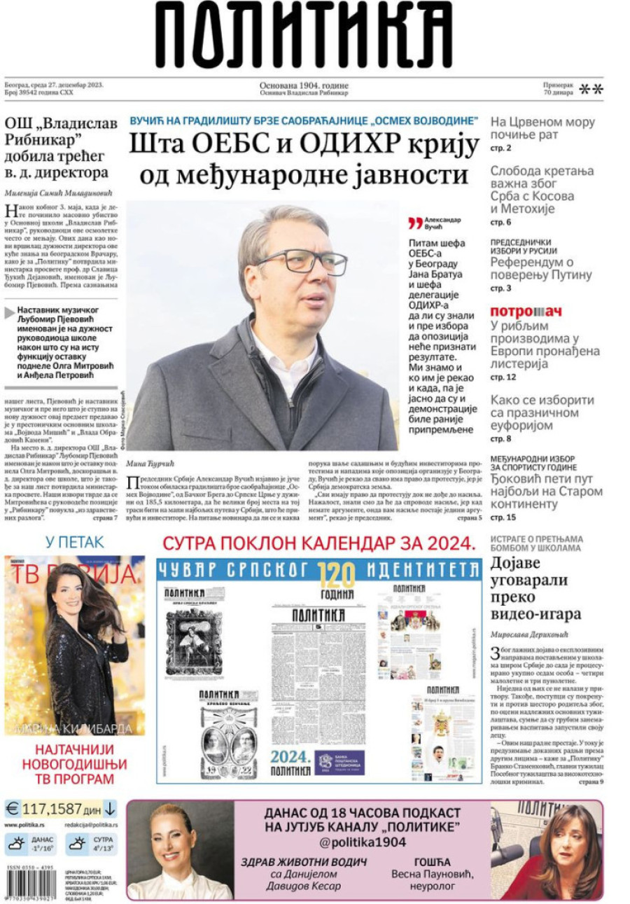 Naslovne strane dnevnih novina: Prelistavanje štampe za 27. decembar 2023. godine