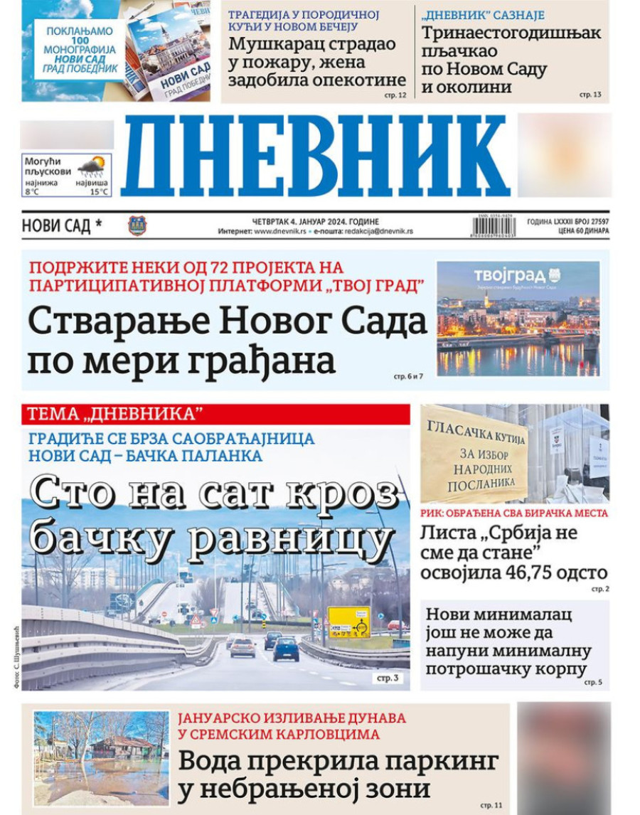 Naslovne strane dnevnih novina: Prelistavanje štampe za 4. januar 2024. godine