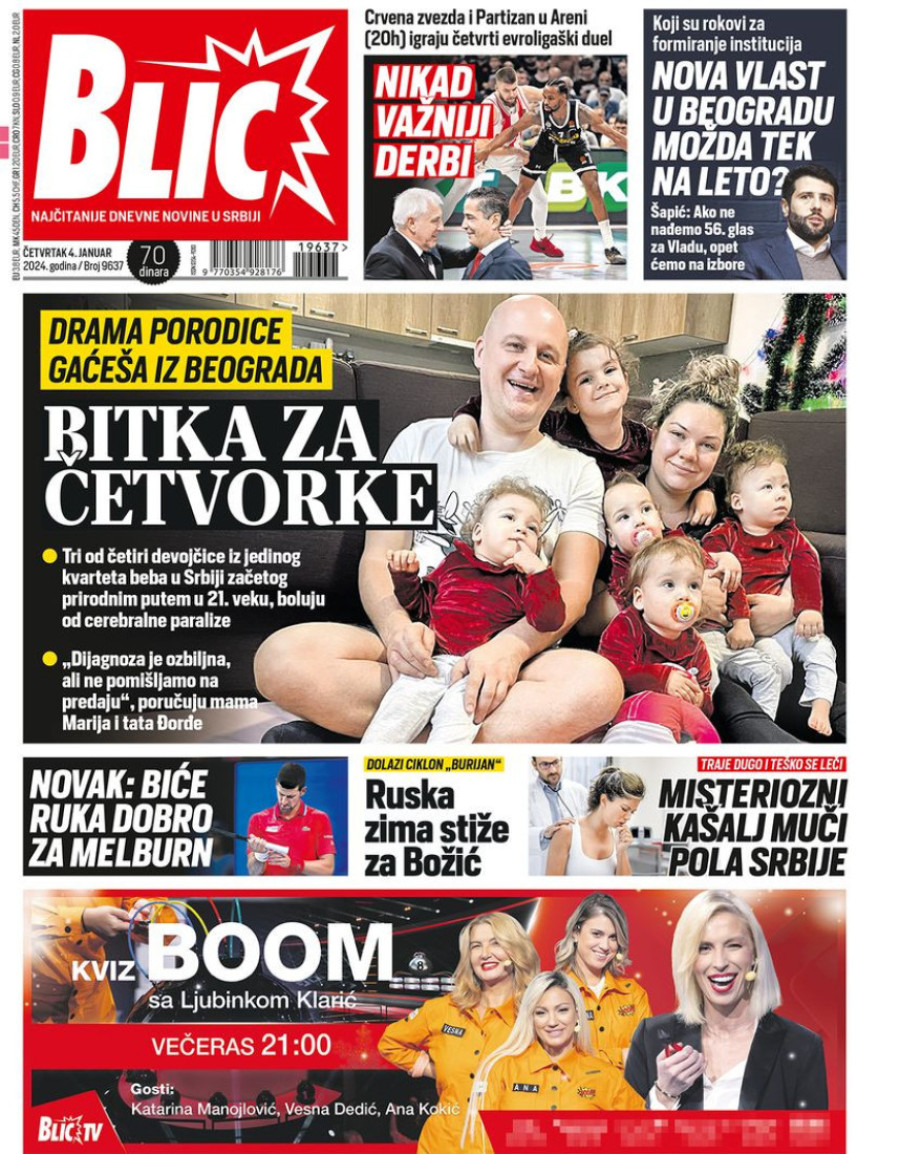 Dnevne novine u Srbiji za četvrtak, 4. januar 2024. godine, na naslovnim stranama najavljuju brojne aktuelne društveno-političke teme.