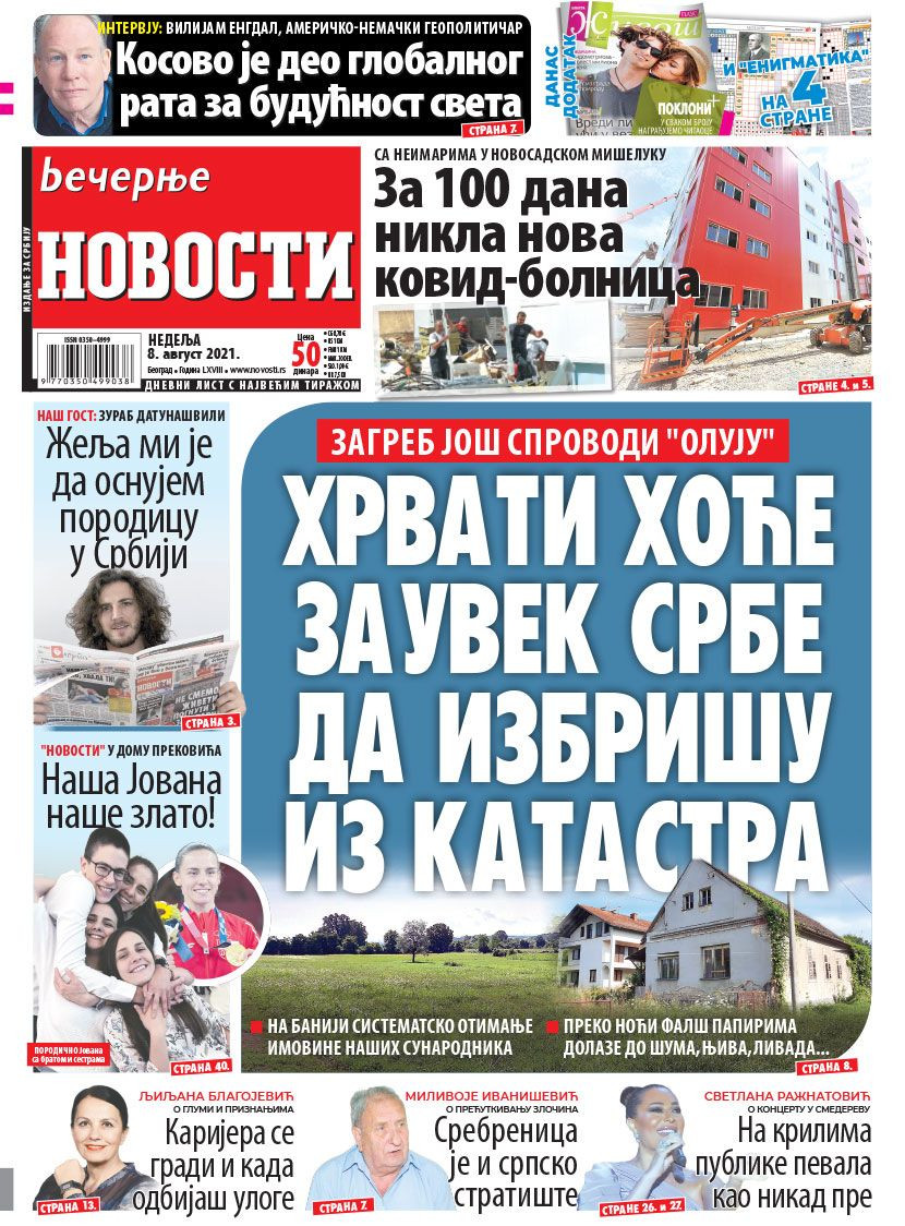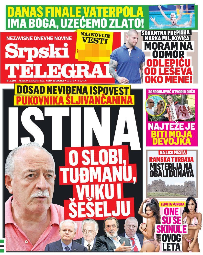 Dnevne novine u Srbiji za nedelju, 8. avgust 2021. godine, na naslovnim stranama najavljuju brojne aktuelne društveno-političke teme i donose ekskluzivne priče.