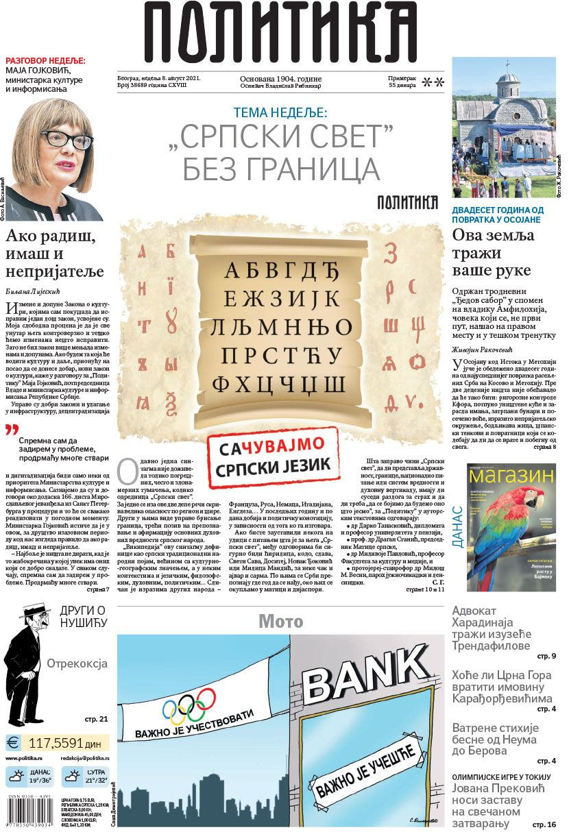 Prelistavanje štampe za nedelju, 8. avgust 2021. godine