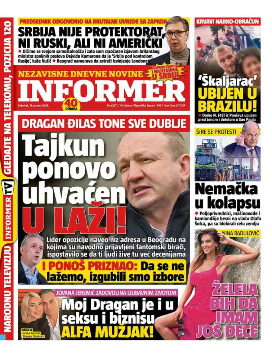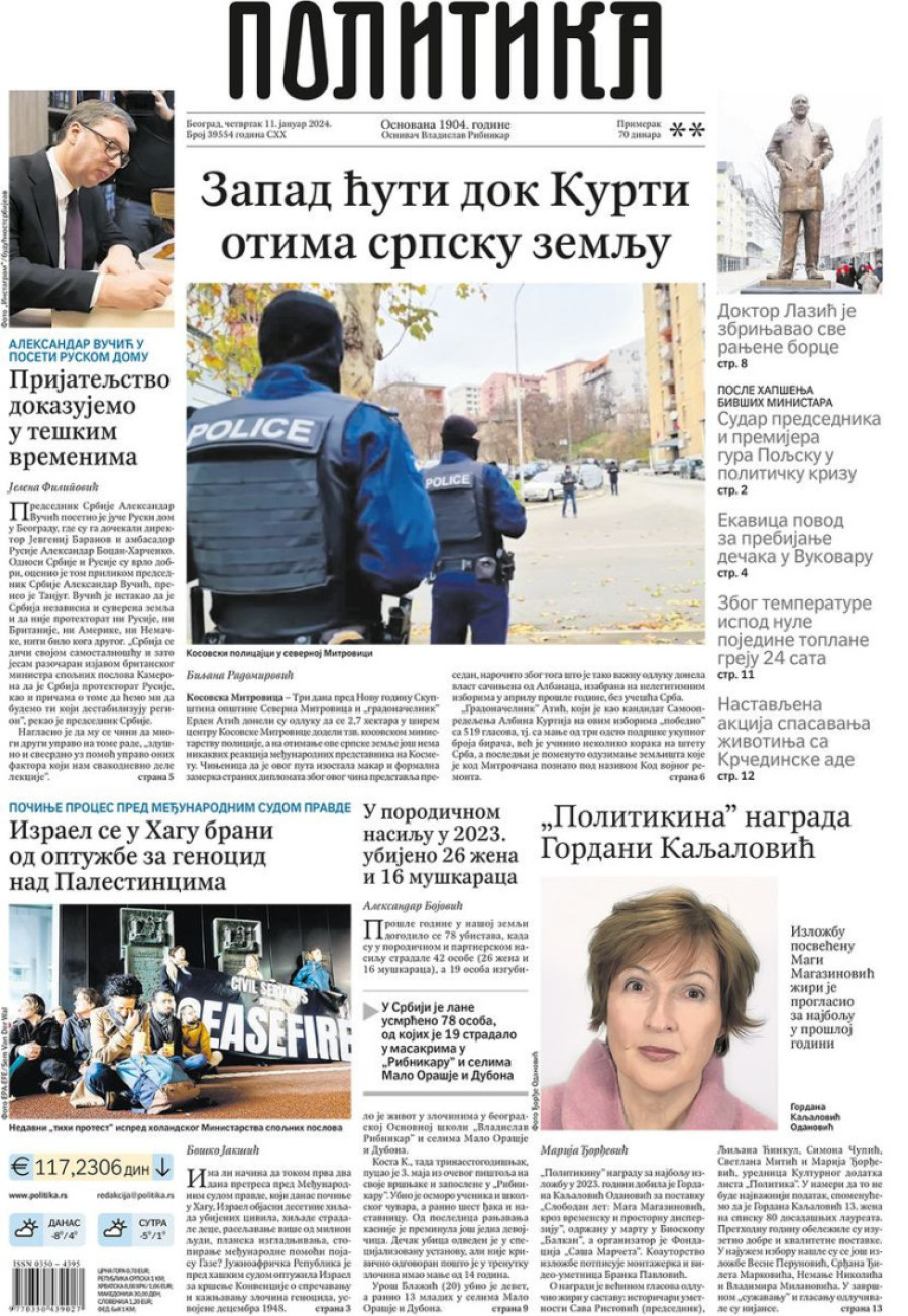 Dnevne novine u Srbiji za četvrtak 11. januar 2024. godine, na naslovnim stranama najavljuju se brojne aktuelne društveno-političke teme.