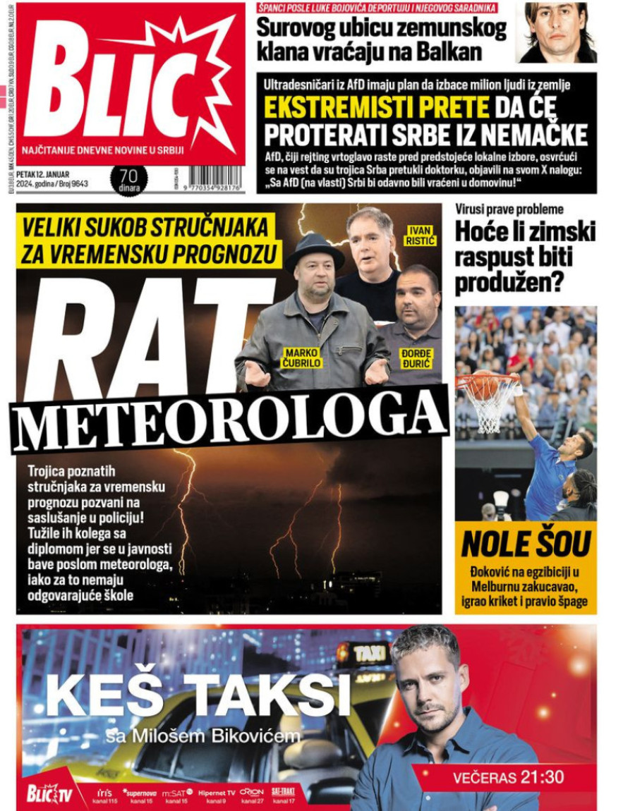 Dnevne novine u Srbiji za petak 12. januar 2024. godine, na naslovnim stranama najavljuju se brojne aktuelne društveno-političke teme.