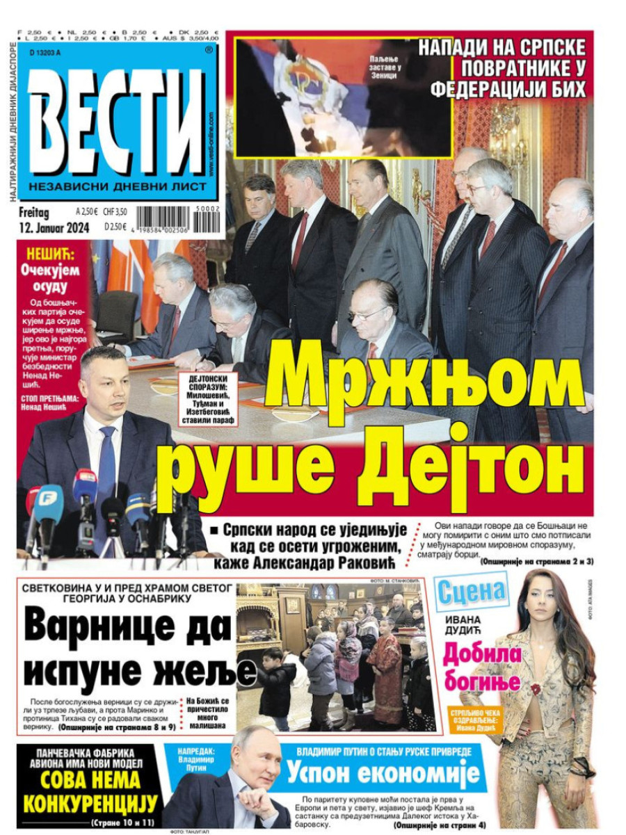 Naslovne strane dnevnih novina: Prelistavanje štampe za 12. januar 2024. godine