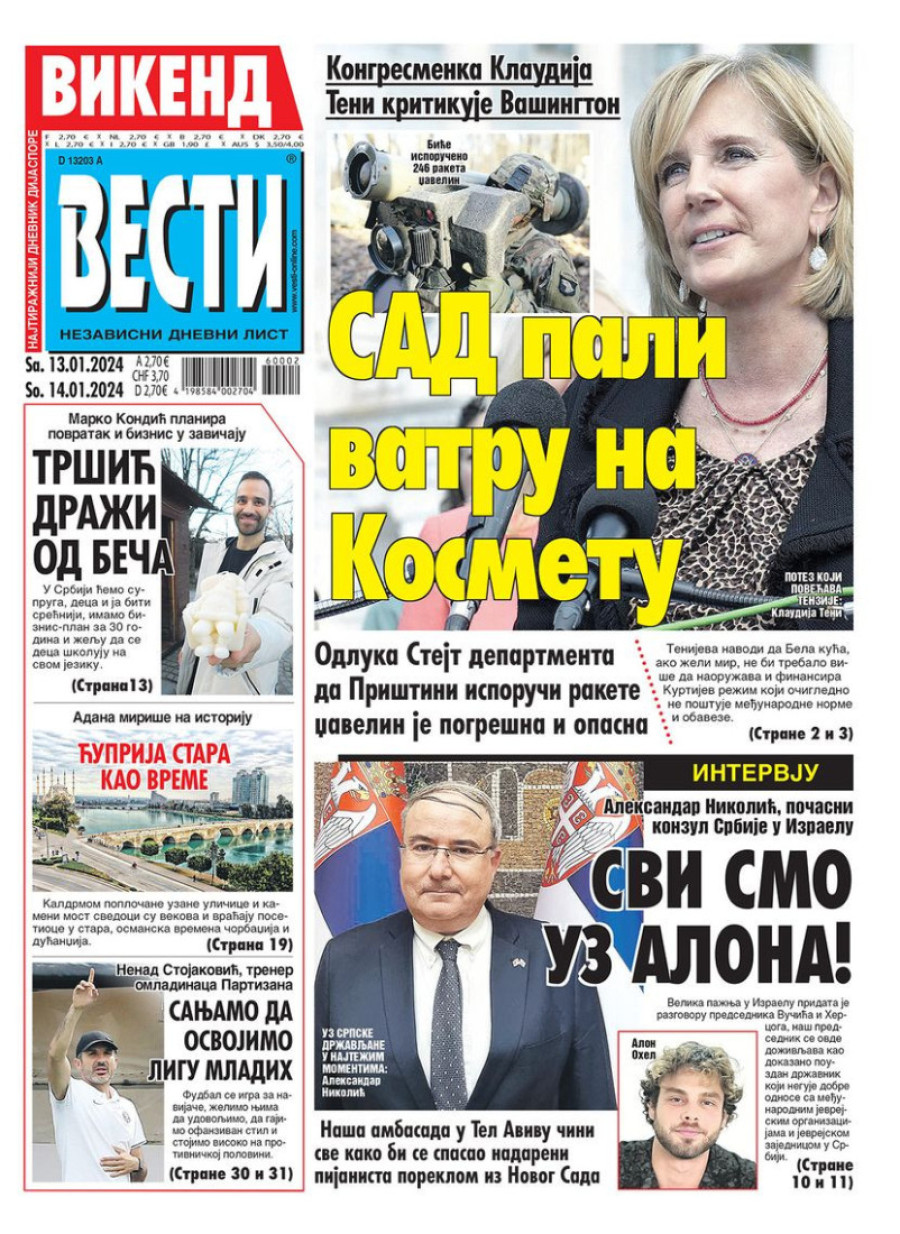 Dnevne novine u Srbiji za subotu 13. januar 2024. godine, na naslovnim stranama najavljuju se brojne aktuelne društveno-političke teme.