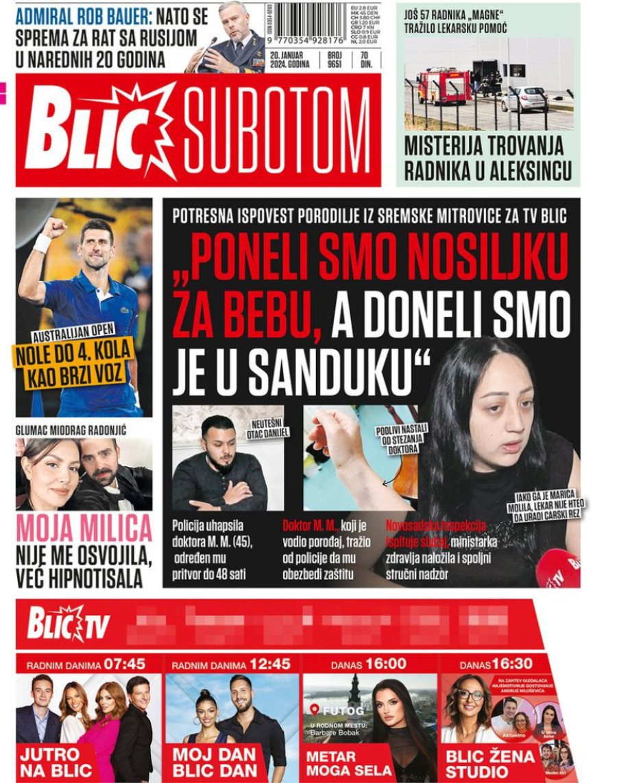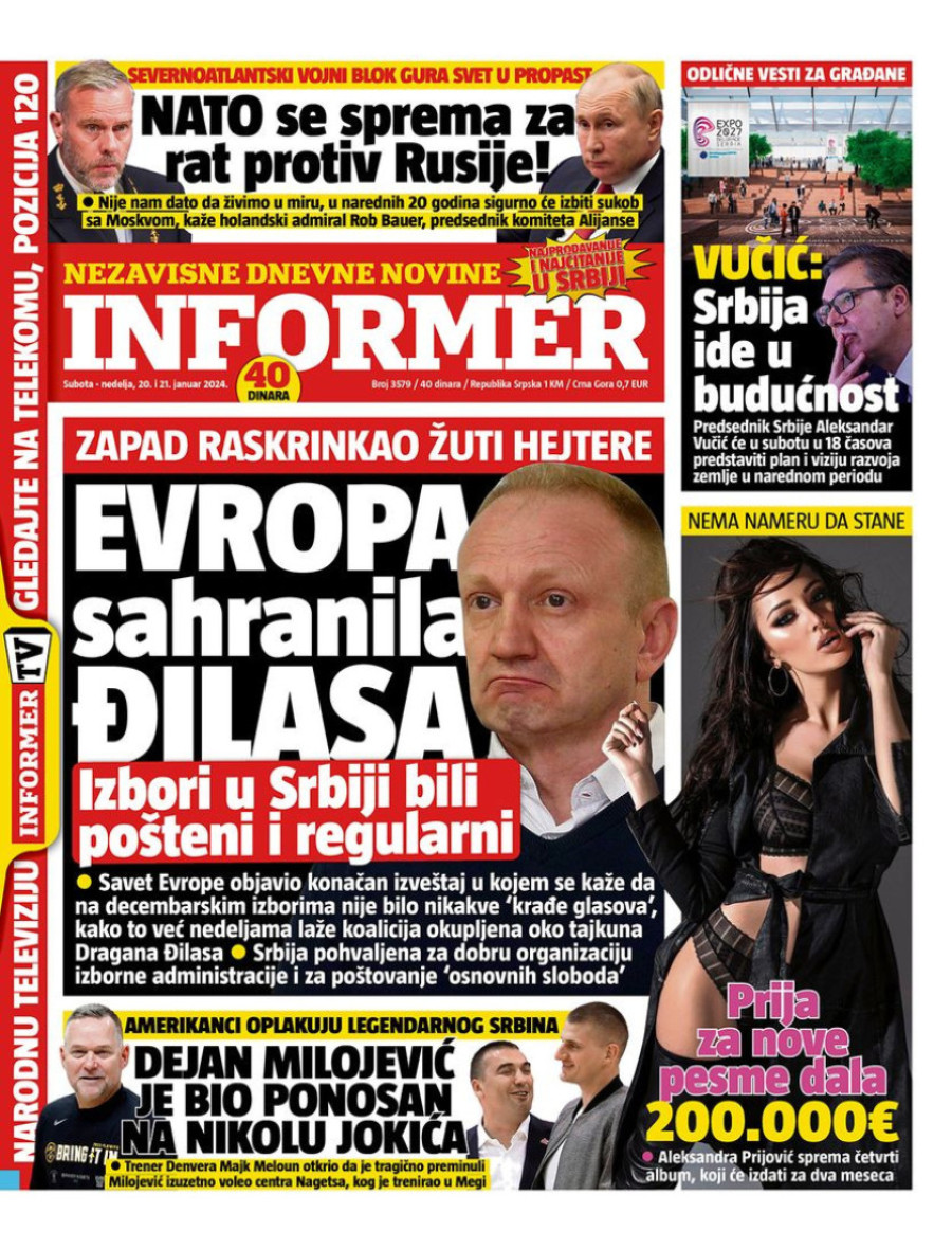 Naslovne strane dnevnih novina: Prelistavanje štampe za 20. januar 2024. godine