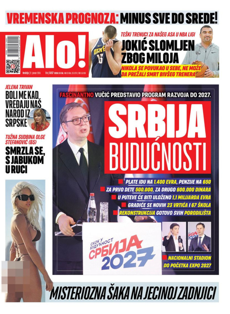 Dnevne novine u Srbiji za nedelju 21. januar 2024. godine, na naslovnim stranama najavljuju brojne aktuelne društveno-političke teme.