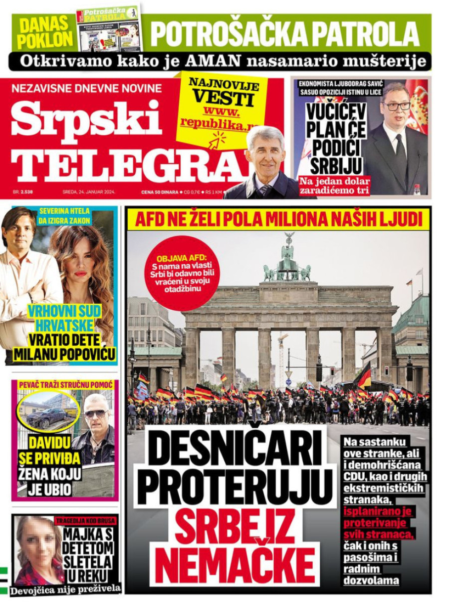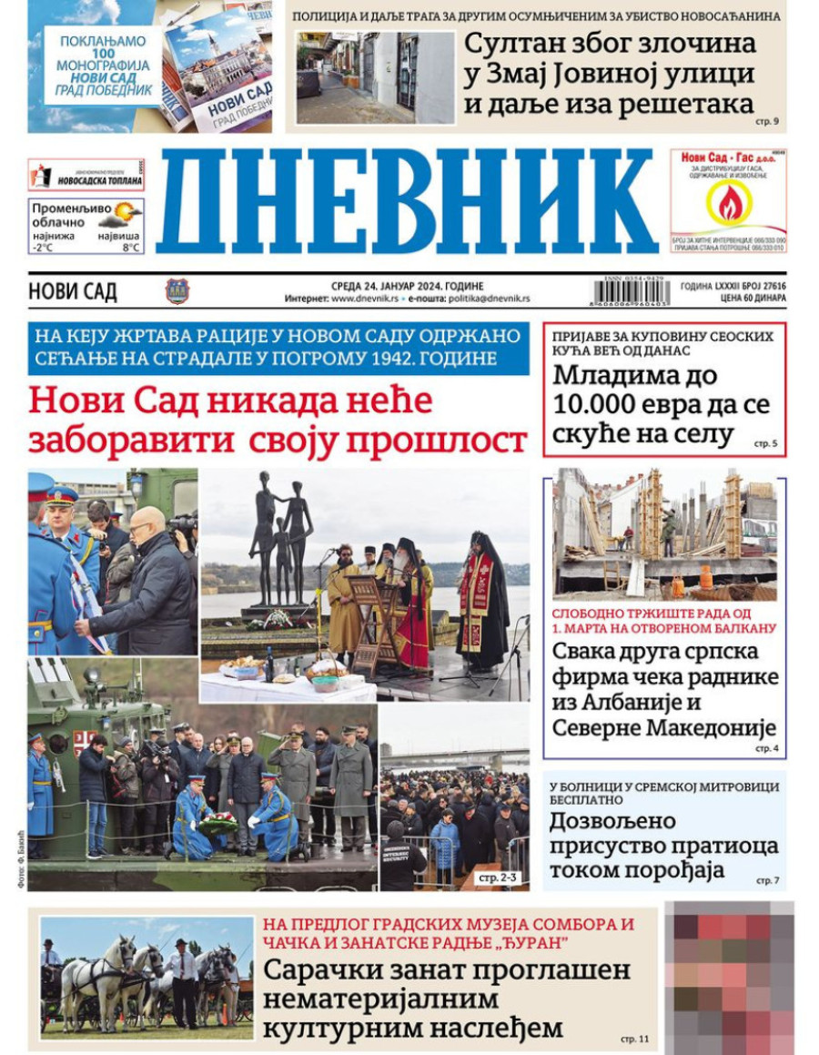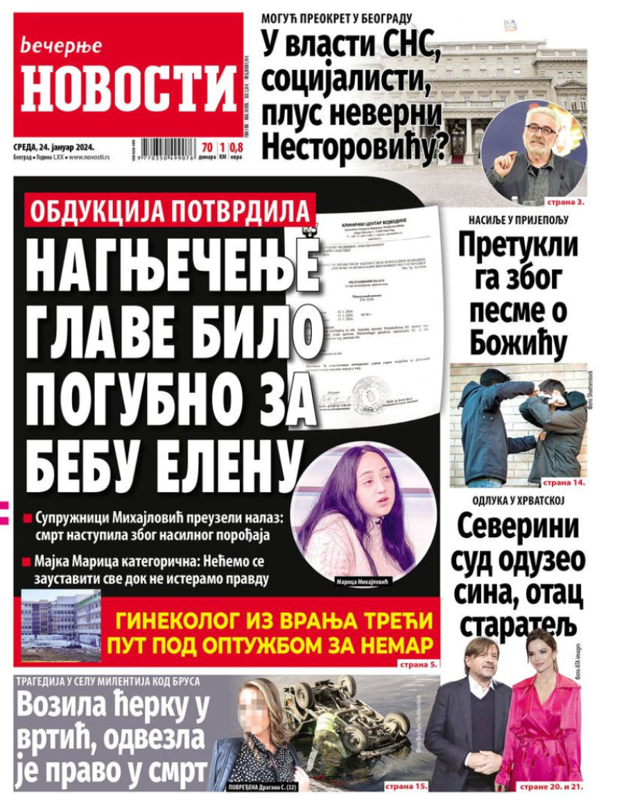 Naslovne strane dnevnih novina: Prelistavanje štampe za 24. januar 2024. godine