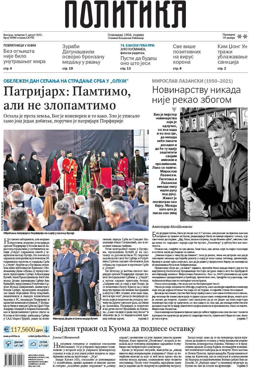 Prelistavanje štampe za četvrtak, 5. avgust 2021. godine