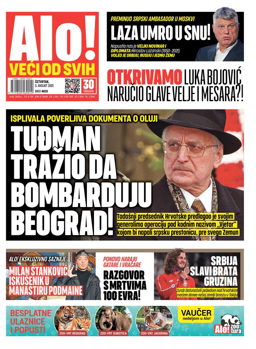 Dnevne novine u Srbiji za četvrtak, 5. avgust 2021. godine, na naslovnim stranama najavljuju brojne aktuelne društveno-političke teme i donose ekskluzivne priče.