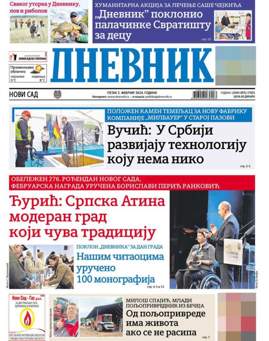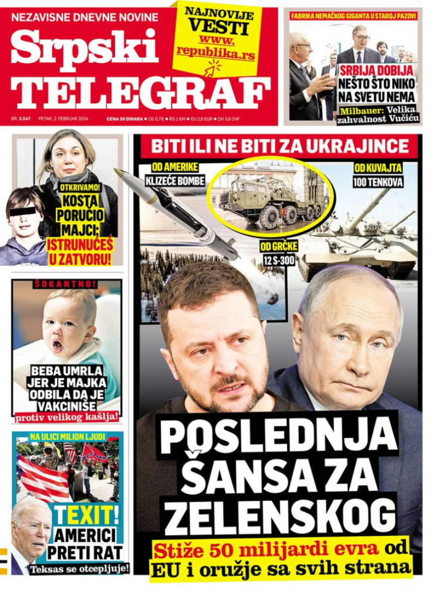 Dnevne novine u Srbiji za petak 2. februar 2024. godine, na naslovnim stranama najavljuju brojne aktuelne društveno-političke teme.