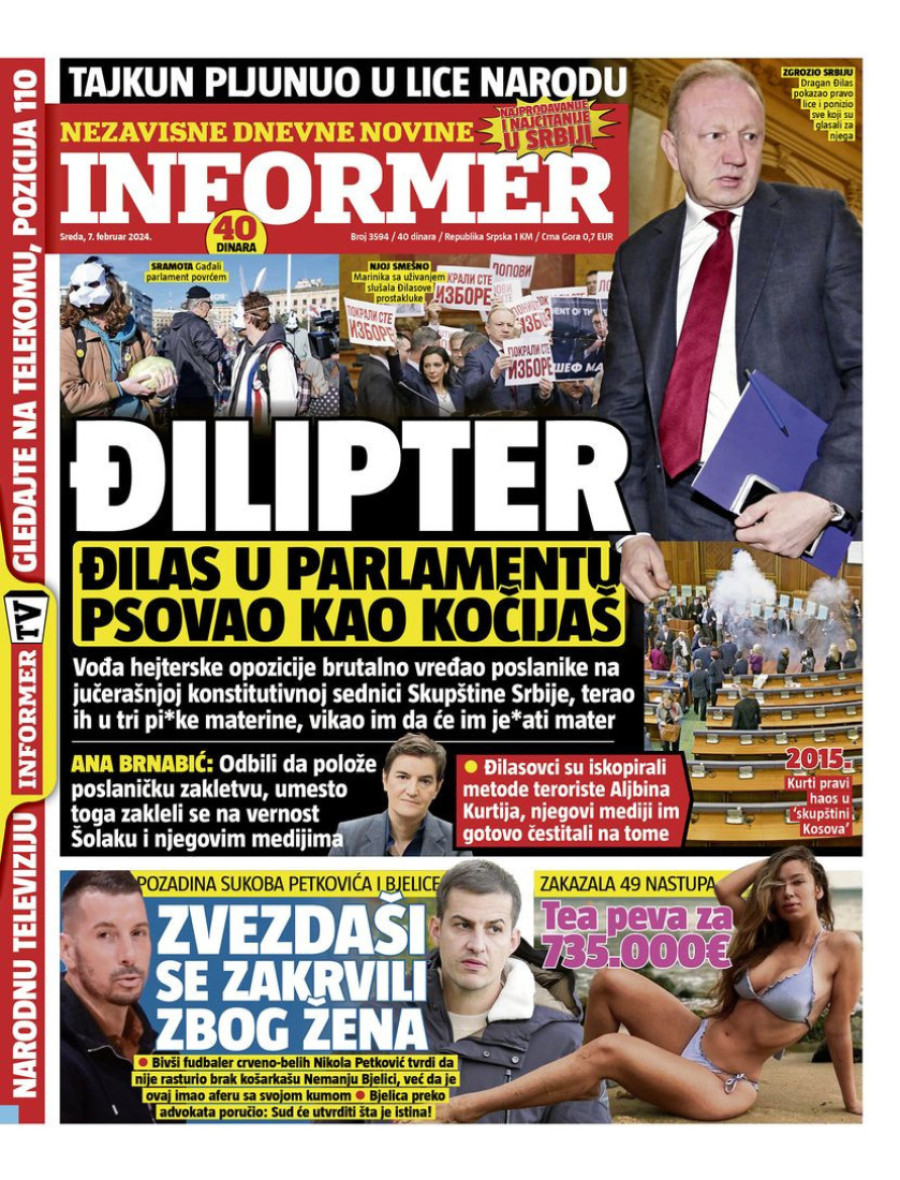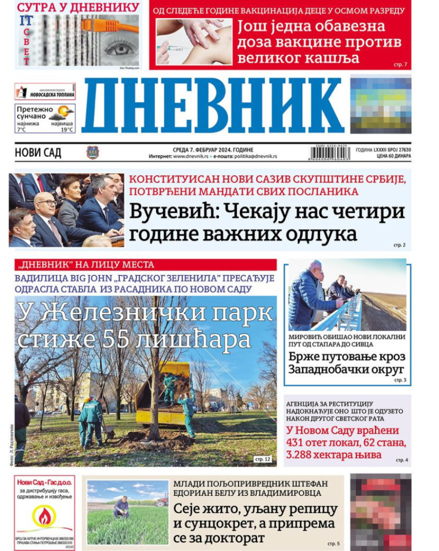 Naslovne strane dnevnih novina: Prelistavanje štampe za 7. februar 2024. godine