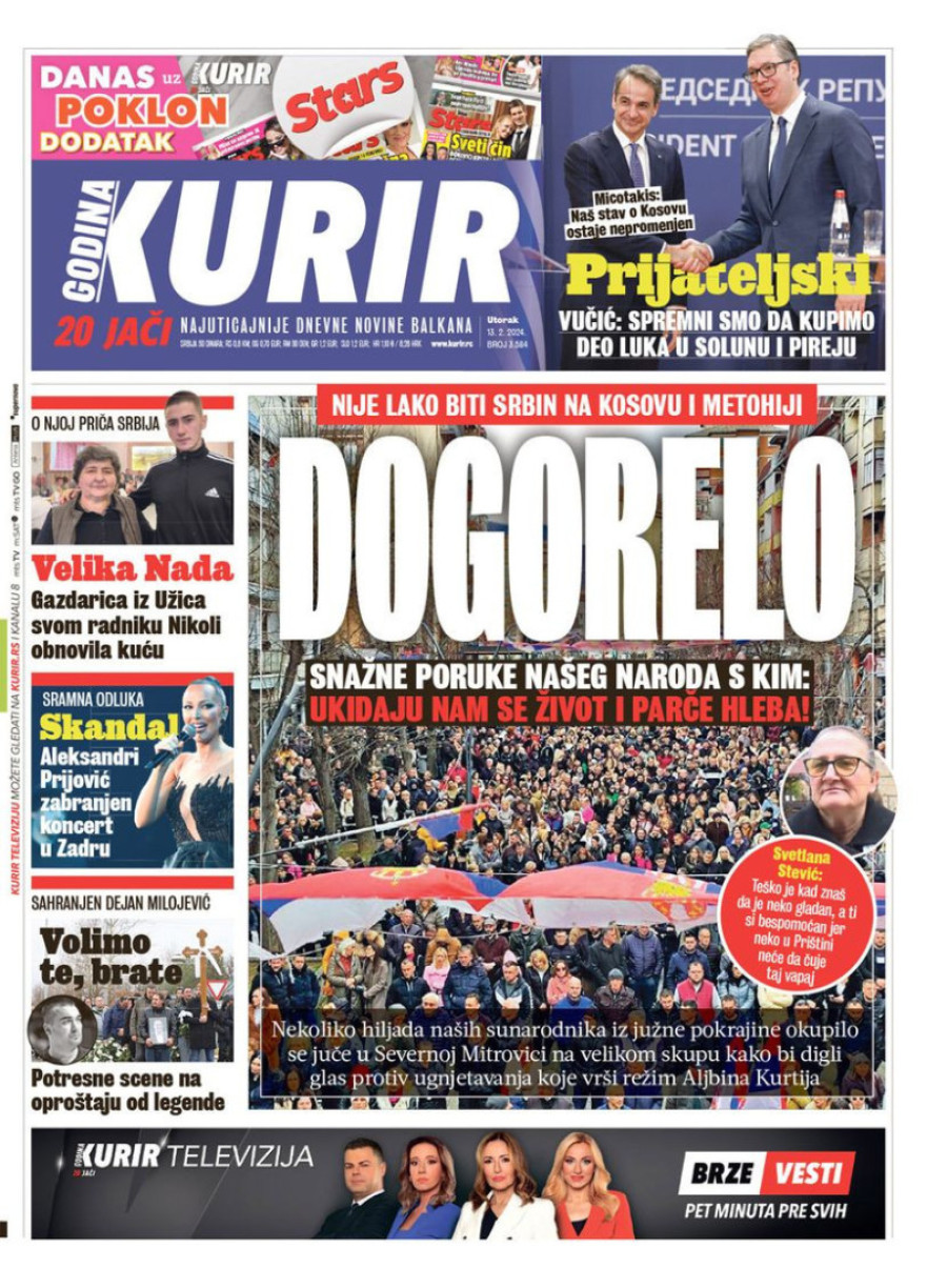 Dnevne novine u Srbiji za utorak 13. februar 2024. godine, na naslovnim stranama najavljuju brojne aktuelne društveno-političke teme.