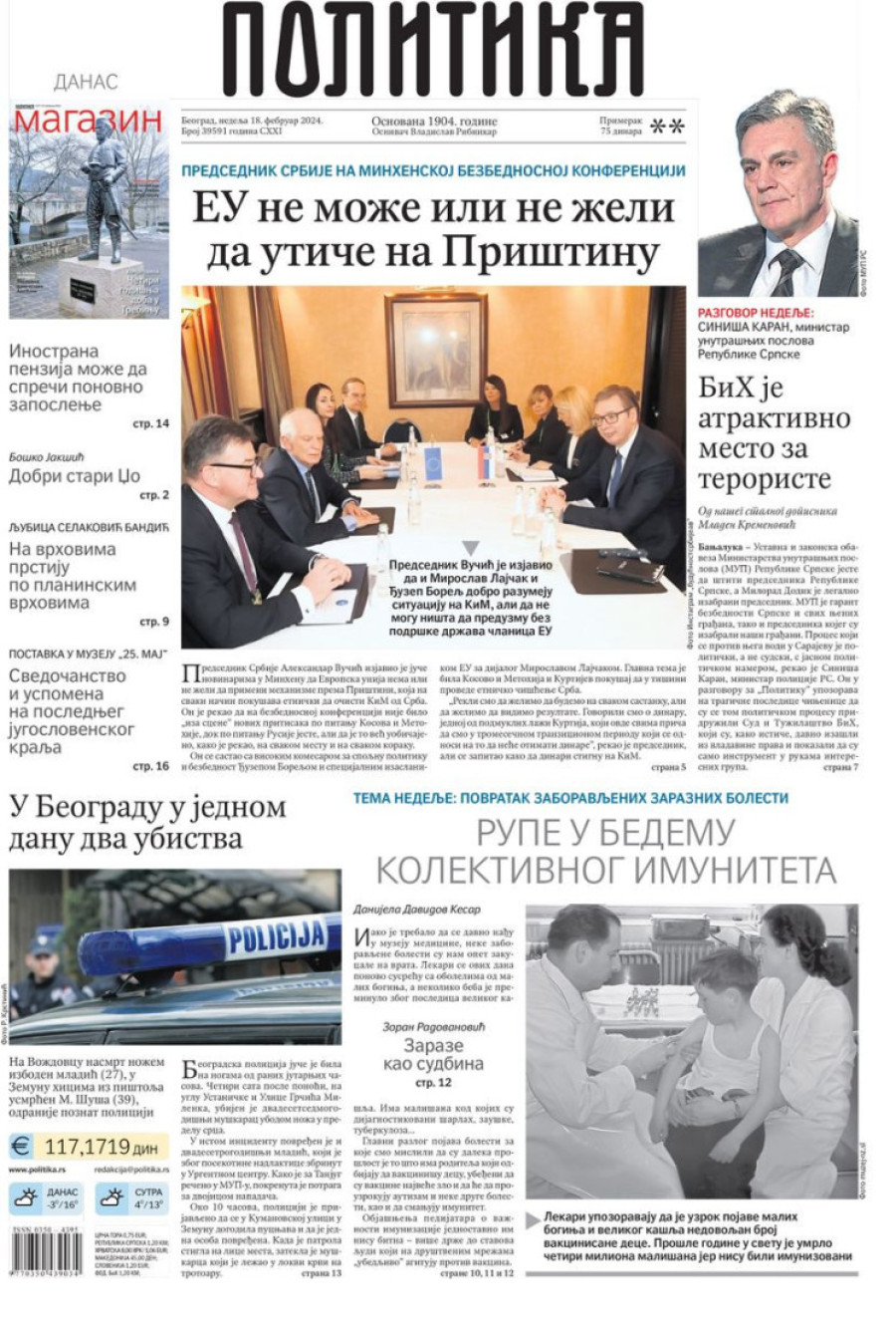 Naslovne strane dnevnih novina: Prelistavanje štampe za 18. februar 2024. godine