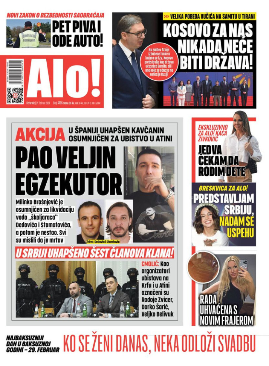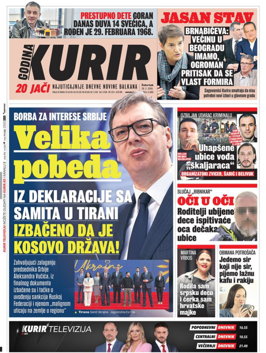 Dnevne novine u Srbiji za četvrtak 29. februar 2024. godine, na naslovnim stranama najavljuju brojne aktuelne društveno-političke teme.