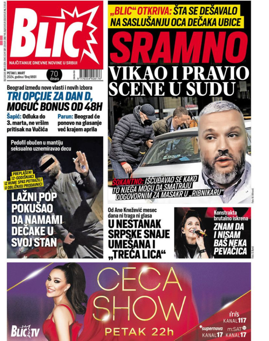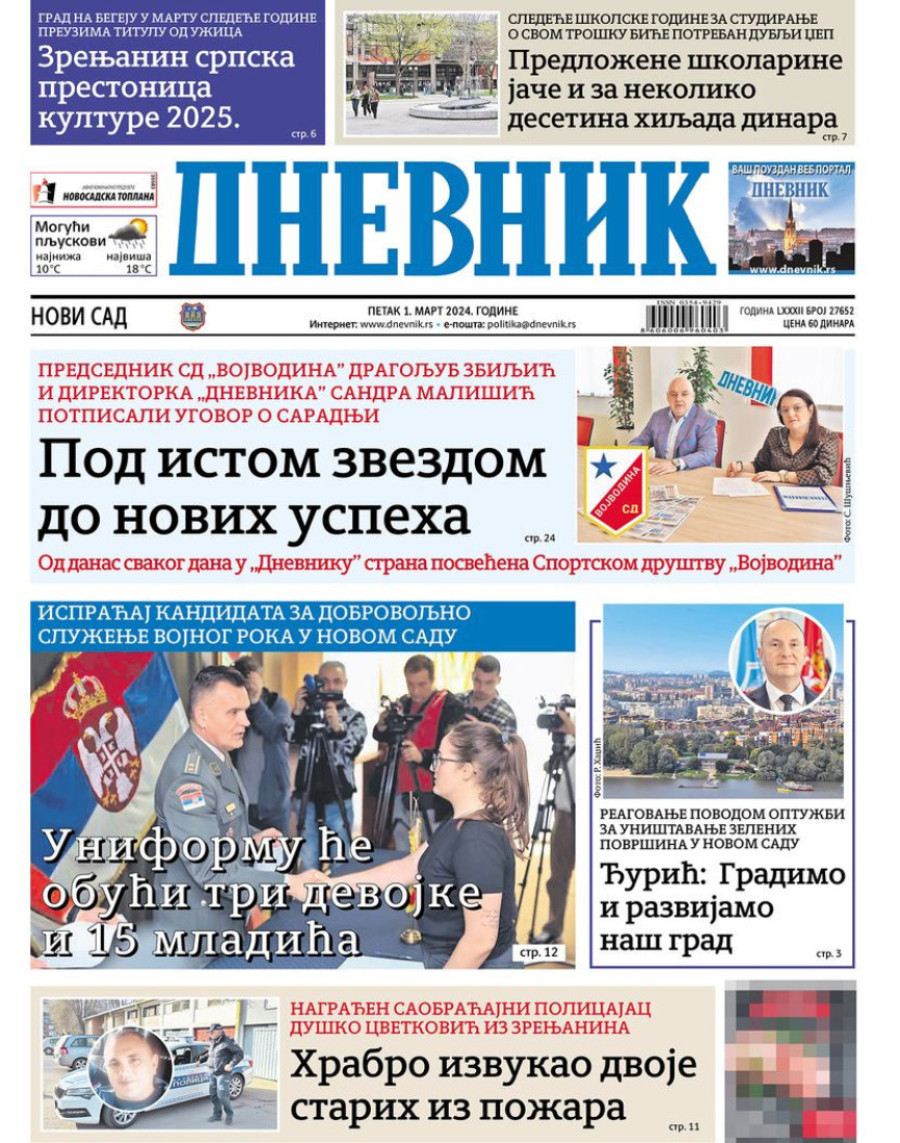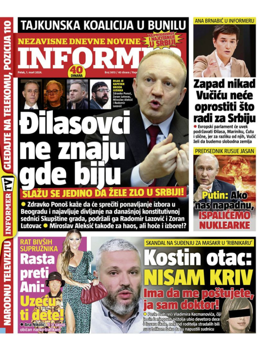 Dnevne novine u Srbiji za petak 1. mart 2024. godine, na naslovnim stranama najavljuju brojne aktuelne društveno-političke teme.