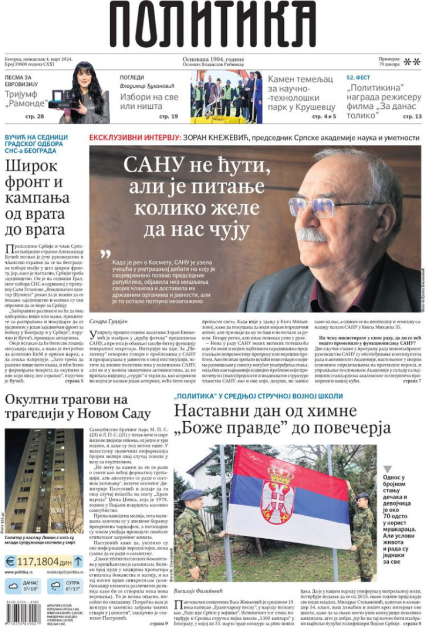 Dnevne novine u Srbiji za ponedeljak 4. mart 2024. godine, na naslovnim stranama najavljuju brojne aktuelne društveno-političke teme.