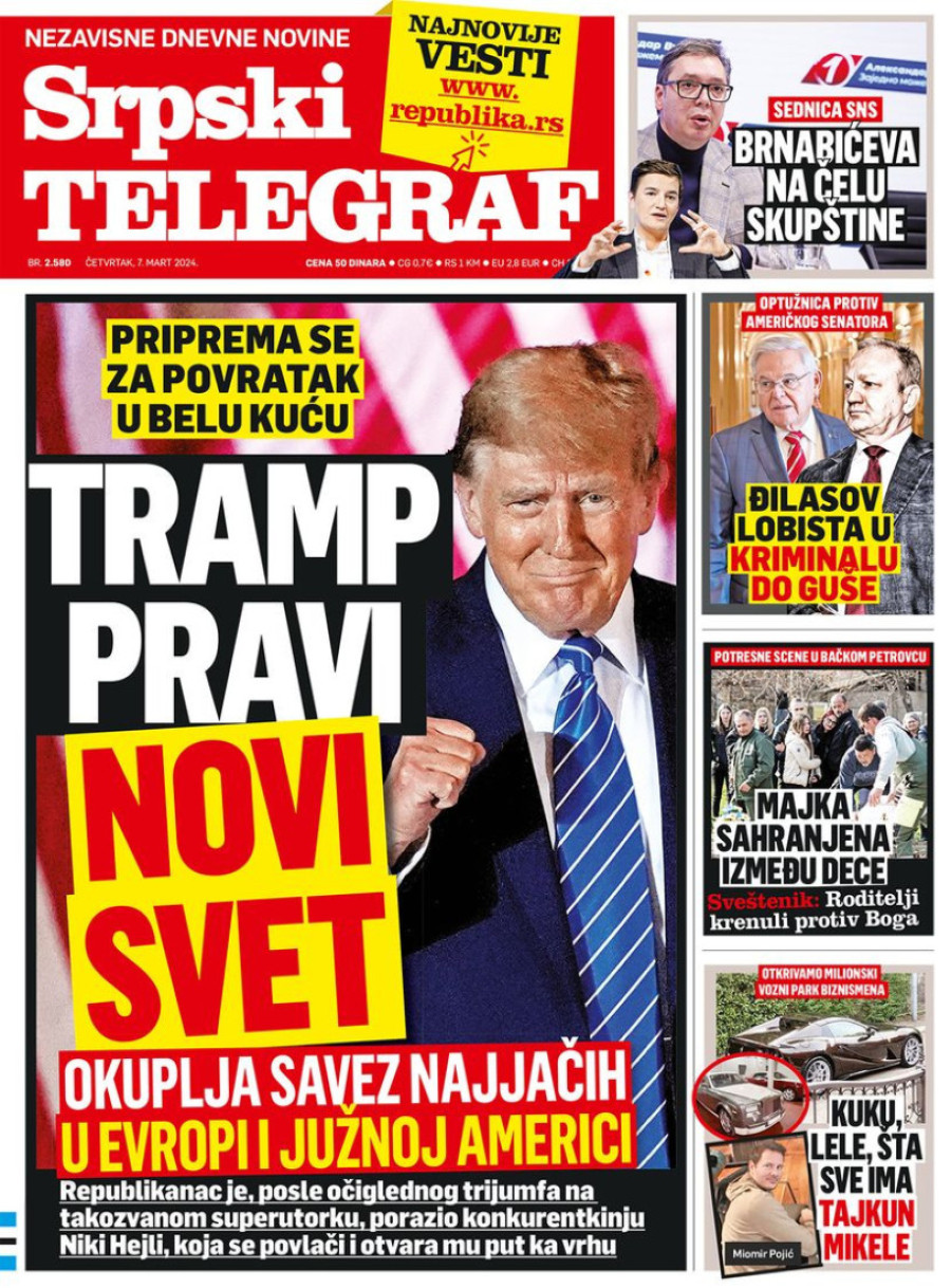 Naslovne strane dnevnih novina: Prelistavanje štampe za 7. mart 2024. godine