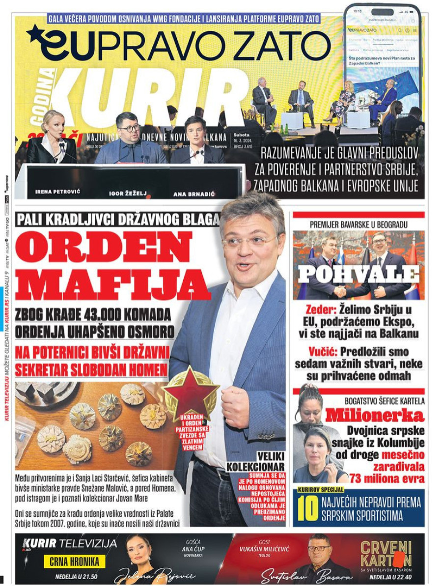Naslovne strane dnevnih novina: Prelistavanje štampe za 16. mart 2024. godine