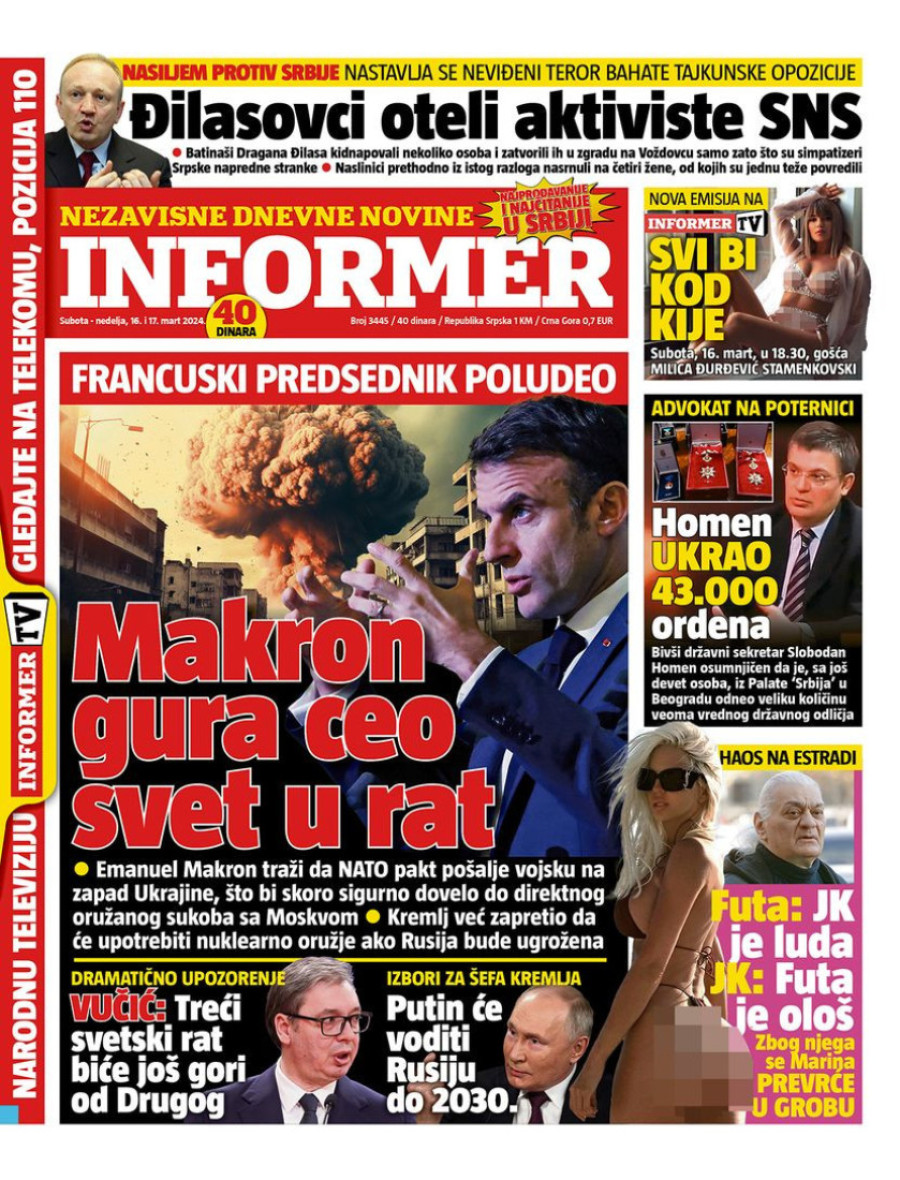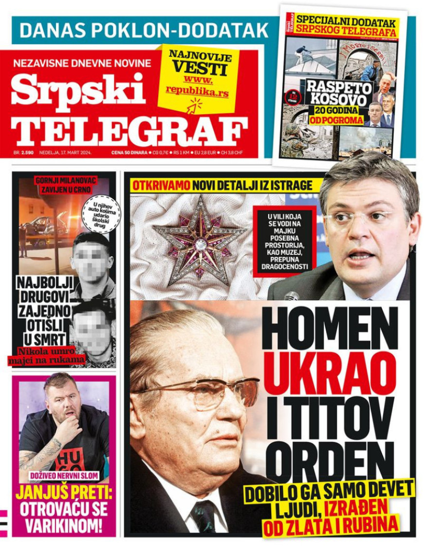 Dnevne novine u Srbiji za nedelju 17. mart 2024. godine, na naslovnim stranama najavljuju brojne aktuelne društveno-političke teme.