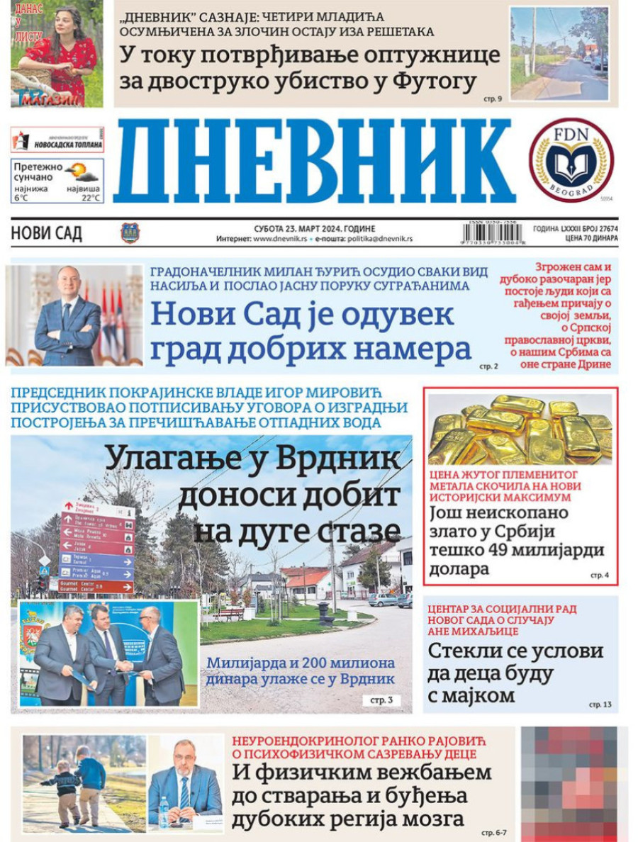 Naslovne strane dnevnih novina: Prelistavanje štampe za 23. mart 2024. godine
