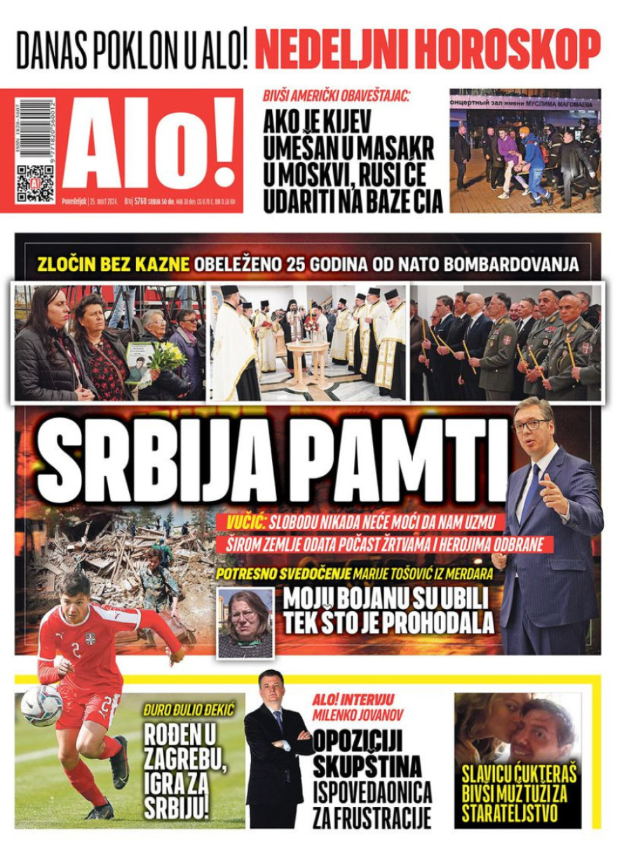 Dnevne novine u Srbiji za ponedeljak 25. mart 2024. godine, na naslovnim stranama najavljuju brojne aktuelne društveno-političke teme.