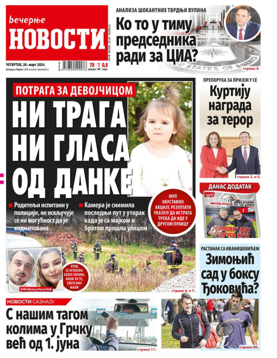 Naslovne strane dnevnih novina: Prelistavanje štampe za 28. mart 2024. godine