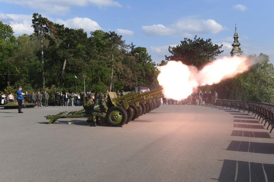 Povodom 23. aprila - Dana Vojske Srbije, pripadnici Garde izveli su danas počasnu artiljerijsku paljbu sa Savske terase na Kalemegdanu, u skladu sa naređenjem predsednika Republike i vrhovnog komandanta Vojske Srbije Aleksandra Vučića.