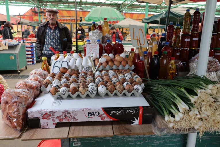 - Od sledeće nedelje prodavaćemo i ofarbana jaja, a cena će biti od 50 do 60 dinara po komadu. Ja radim jedina na pijaci i dekupaž jaja, to jako lepo izgleda, i svake godine se dobro prodaju - kaže prodavačica.