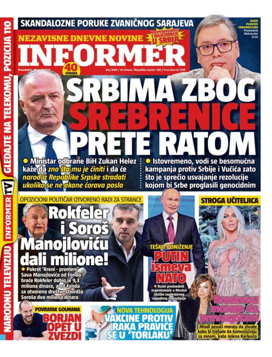 Naslovne strane dnevnih novina u Srbiji...