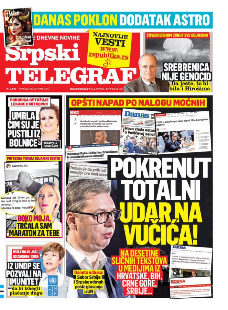 Naslovne strane dnevnih novina: Prelistavanje štampe za 29. april 2024. godine