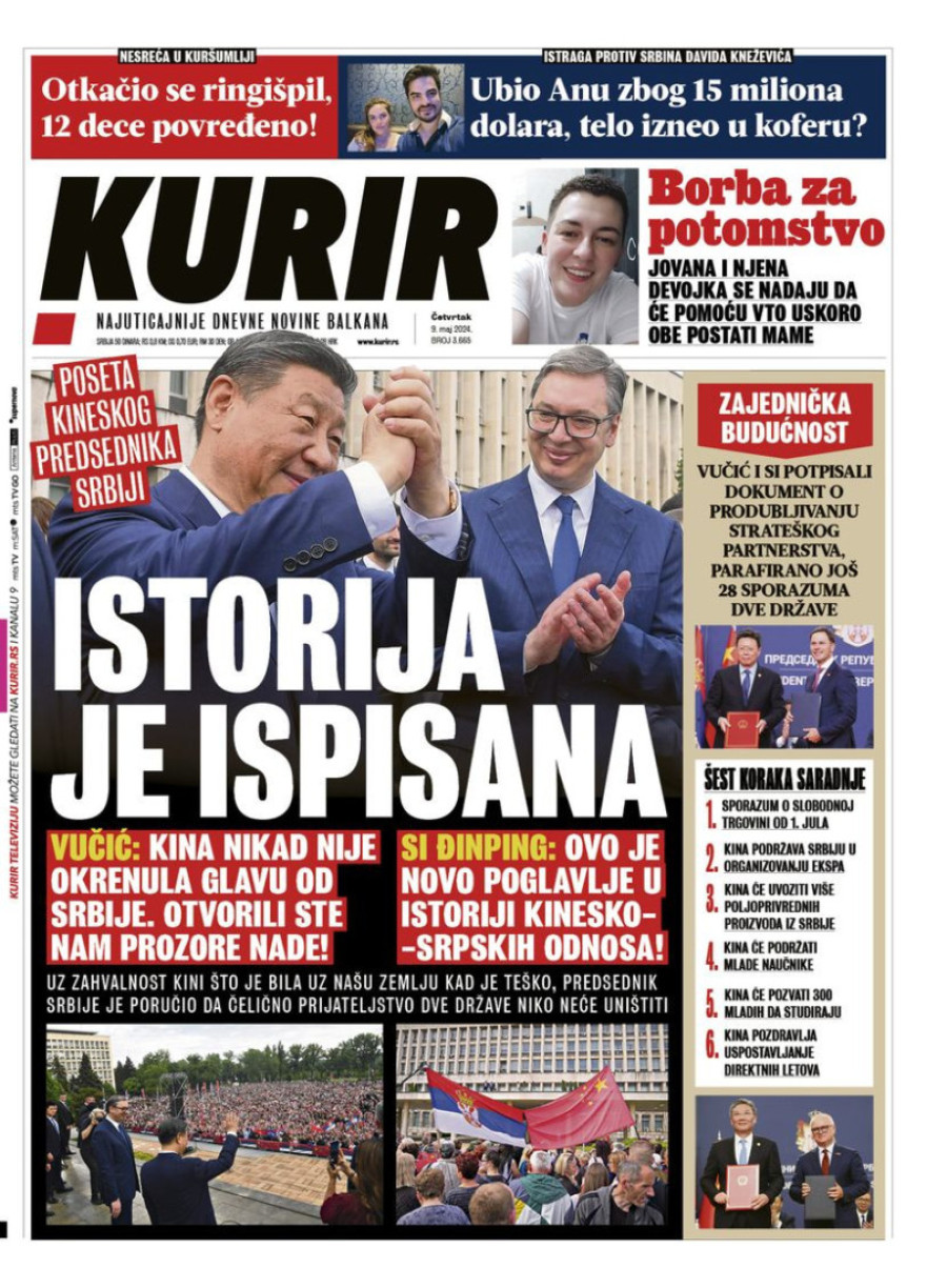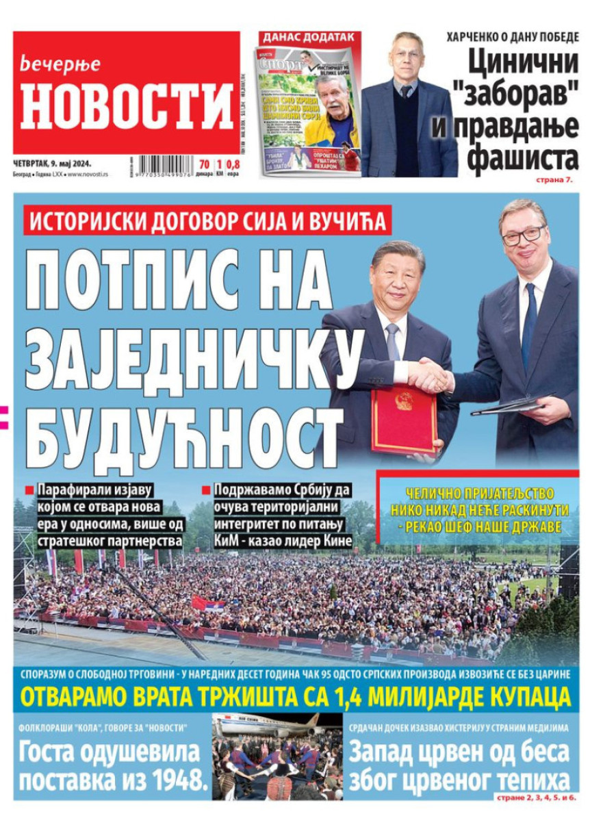 Dnevne novine u Srbiji za četvrtak 9. maj 2024. godine, na naslovnim stranama najavljuju brojne aktuelne društveno-političke teme.