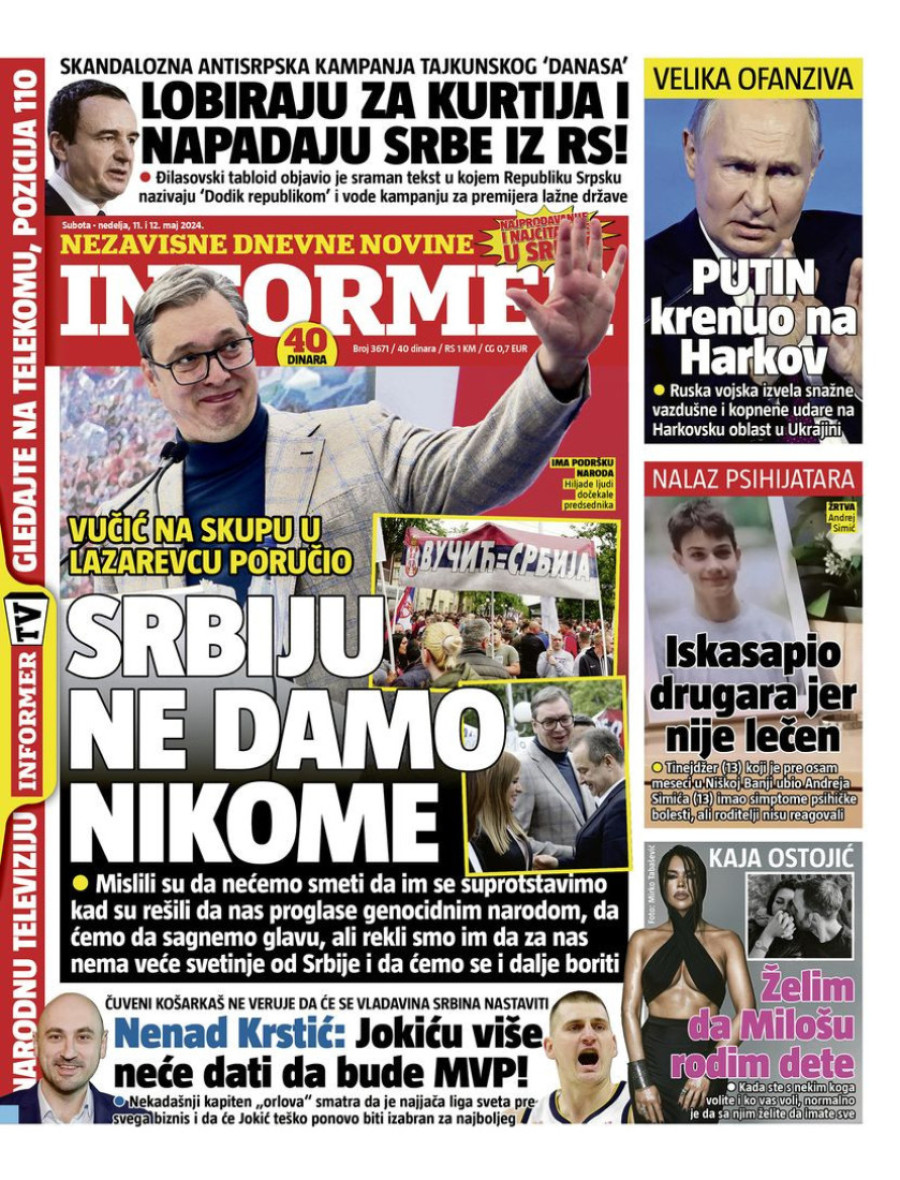 Naslovne strane dnevnih novina: Prelistavanje štampe za 11. maj 2024. godine