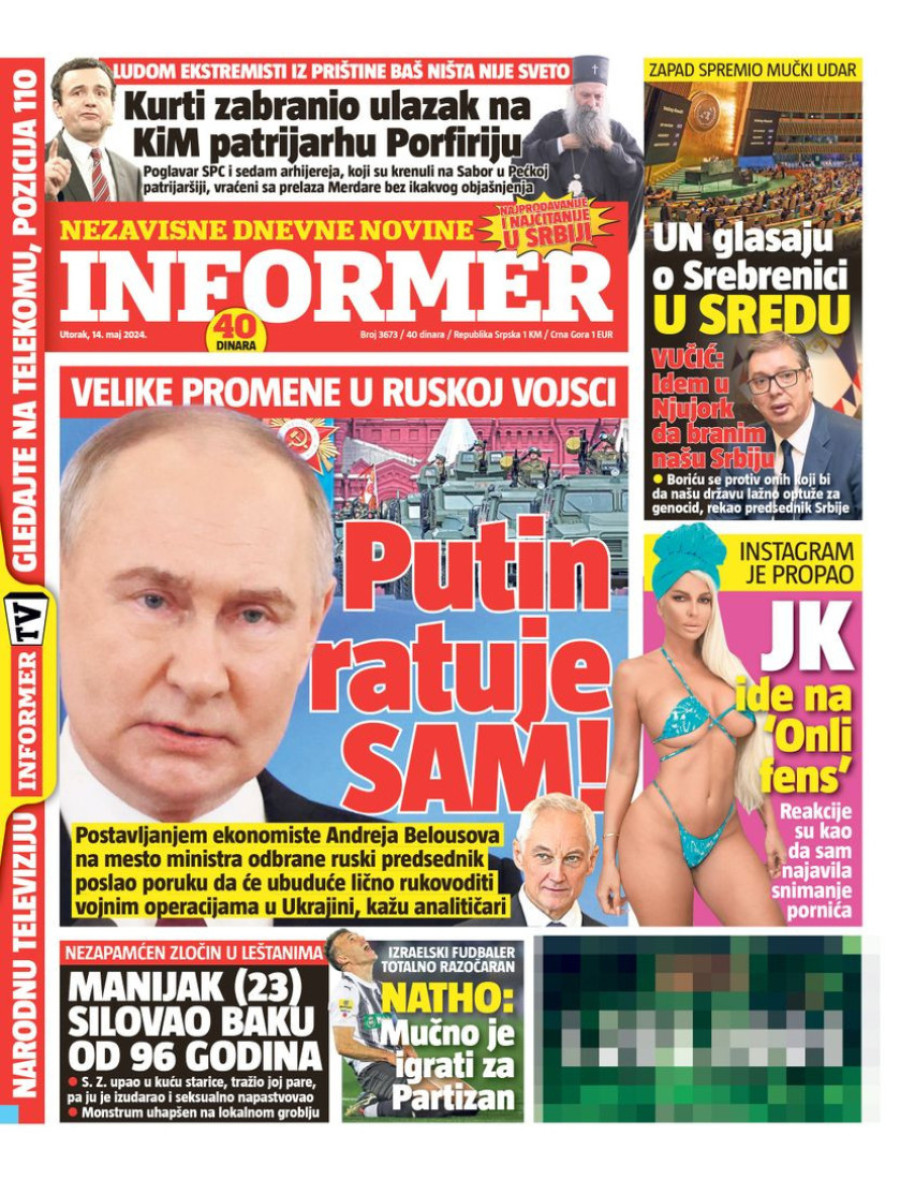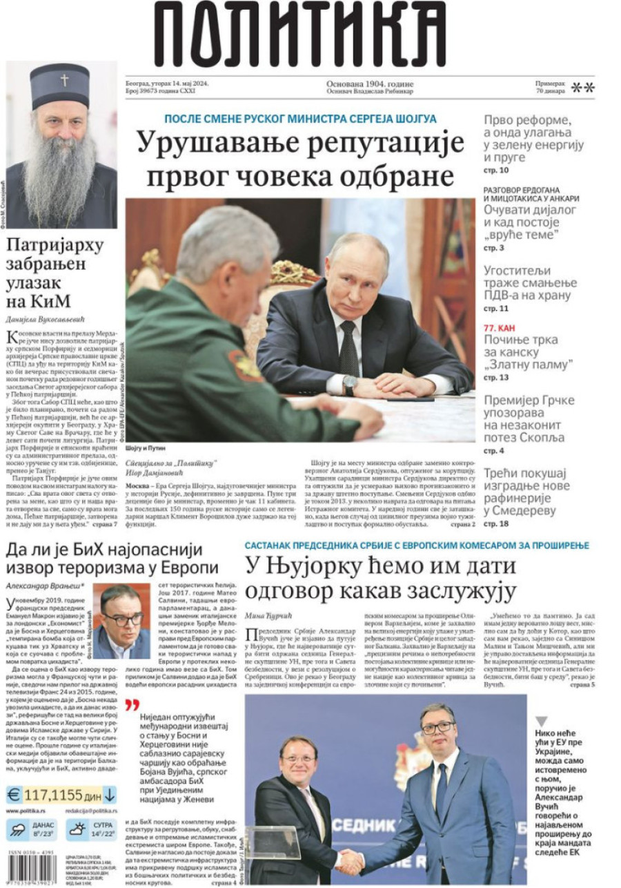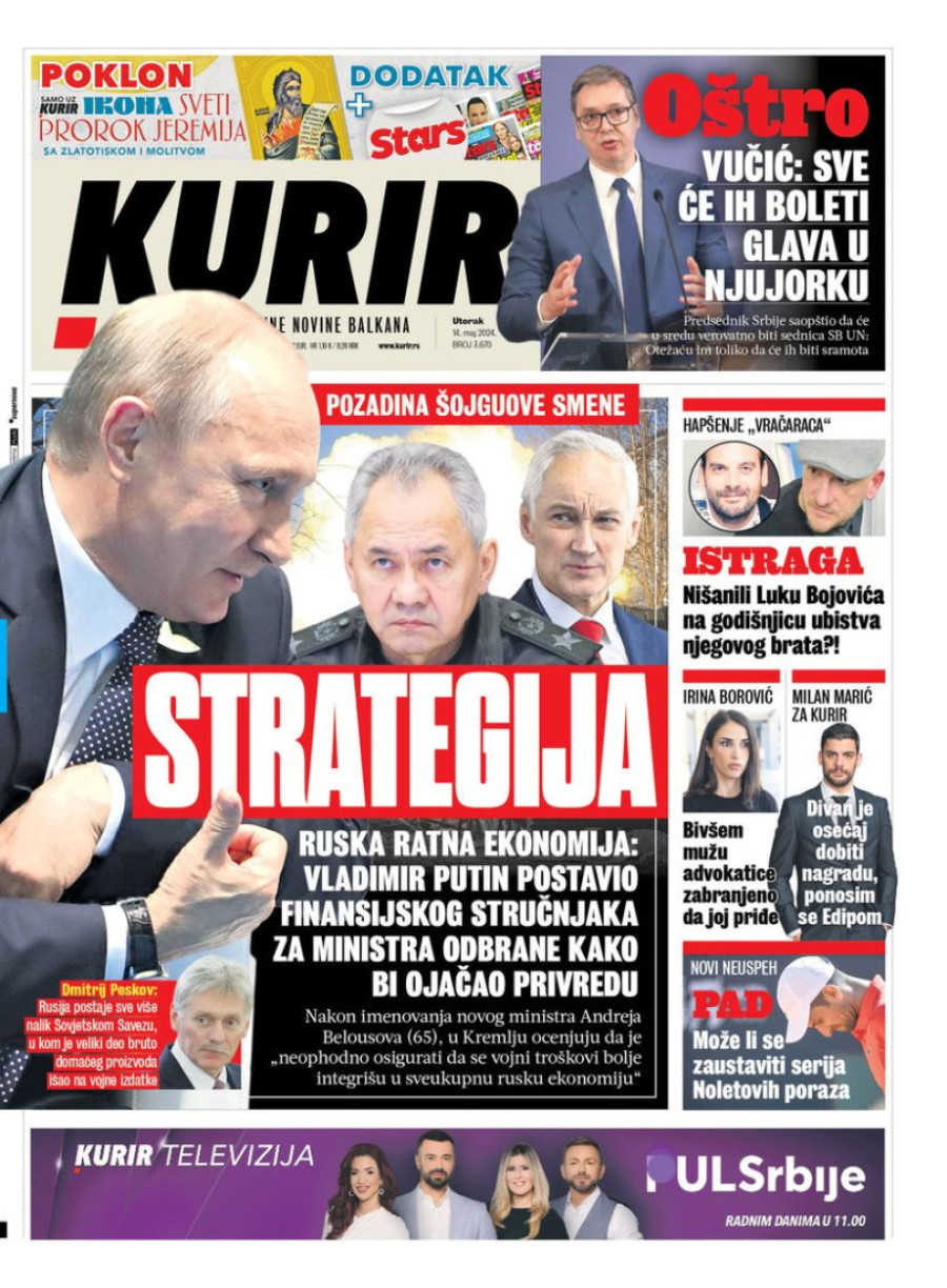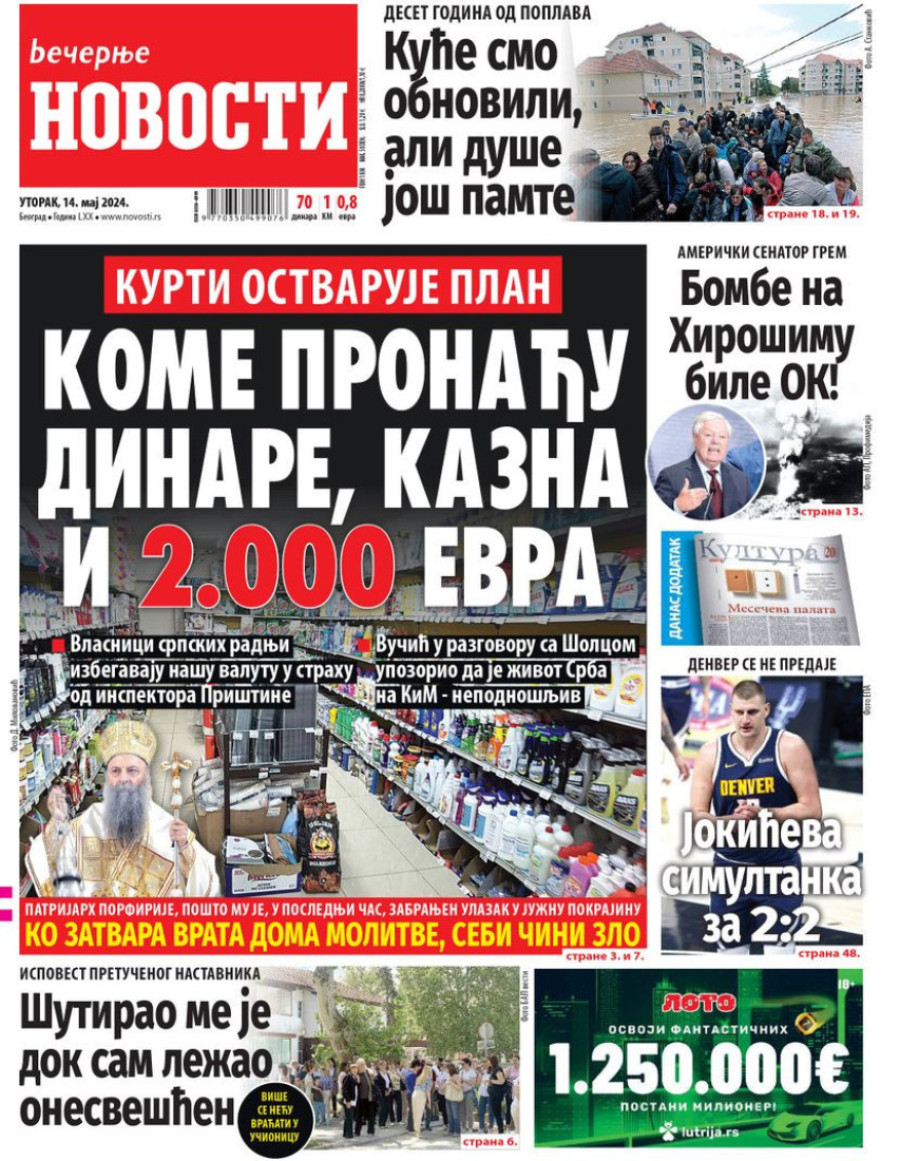 Dnevne novine u Srbiji za utorak 14. maj 2024. godine, na naslovnim stranama najavljuju brojne aktuelne društveno-političke teme.