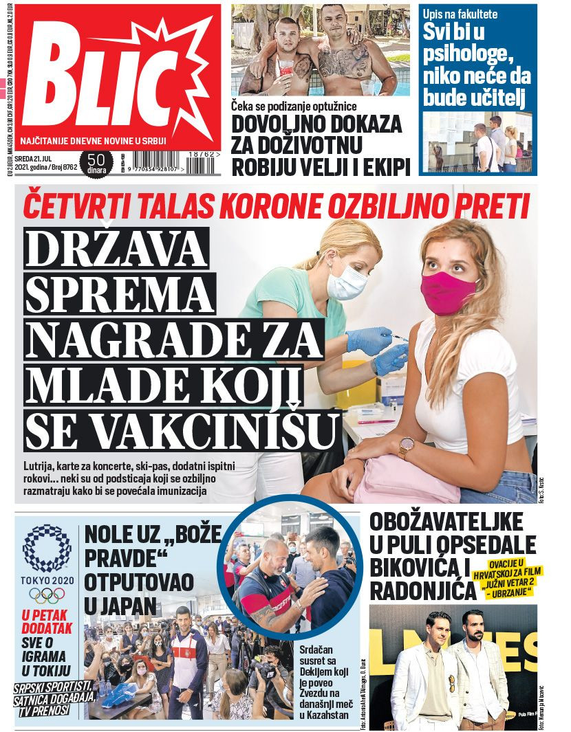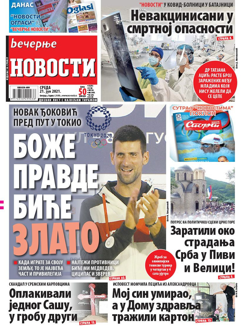 Dnevne novine u Srbiji za sredu, 21. jul 2021. godine, na naslovnim stranama najavljuju brojne aktuelne društveno-političke teme i donose ekskluzivne priče.