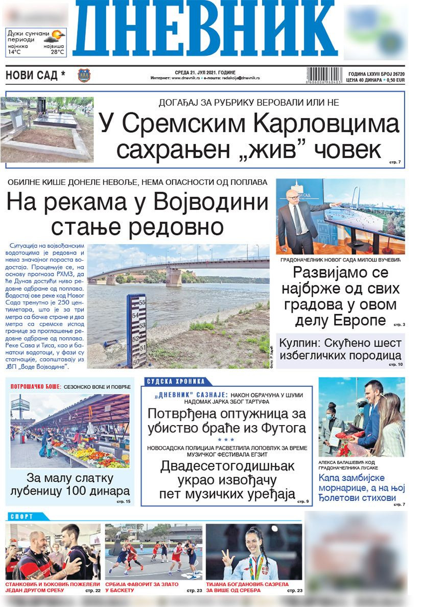 Prelistavanje štampe za sredu, 21. jul 2021. godine