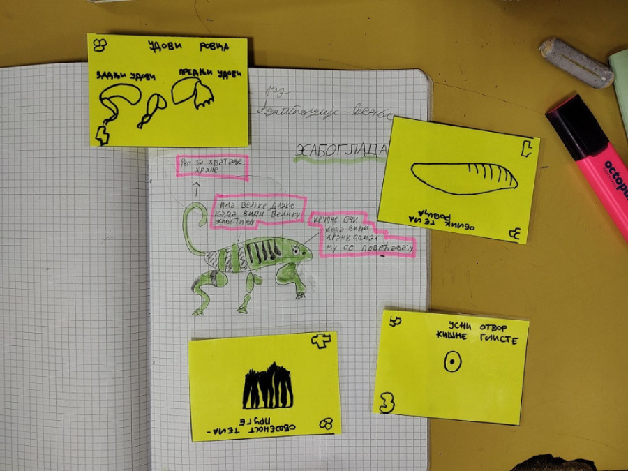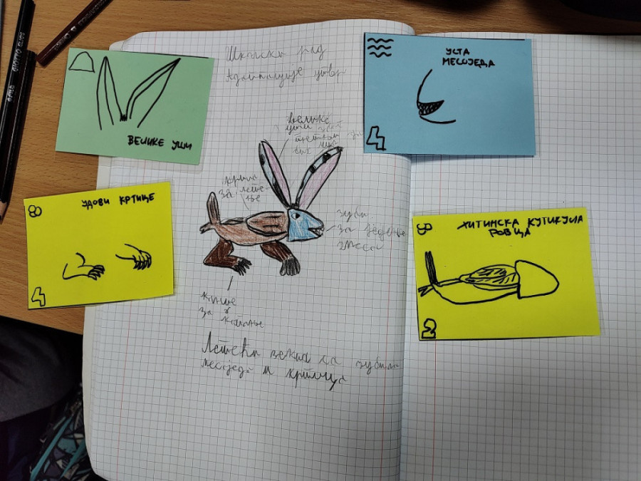 Dodaje da je osmislila da, na primer, nacrtaju jelena, da delove životinje potom stave na kartice i da dodaju poneku adaptaciju ili naziv te novodobijene životinje, s tim da svaki deo ima svoju funkciju i da tu funkciju navedu.
