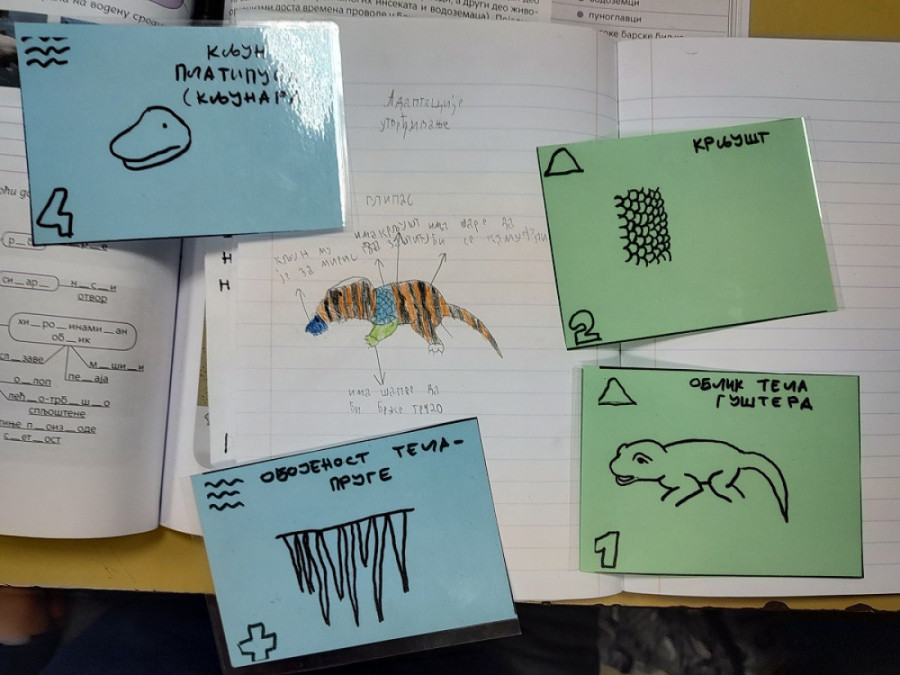 Njen rad konkretno približava učenicima problem prilagođenosti vrsta na životnu sredinu. Da bi učenike podstakla da razmišljaju o tome, napravila je nastavni materijal na karticama koje učenici kombinuju i tako stvaraju sopstvenu životinju, svog zanimljivog hibrida na kome ponavljaju prilagođenosti na životnu sredinu.