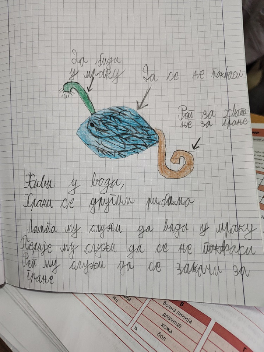 - Tako su nastali naši hibridi. Učenici nisu ni svesni toga da na taj način zapravo obnavljaju gradivo - čemu služe, na primer, peraja, čemu rogovi i slično. Ono što je bitno jeste to da su zadovoljni, da im je zanimljivo tokom časa, kao i da im dugo ostaje u sećanju. Pa i kada kasnije ne mogu da se sete nekog detalja, podsetim ih da su to crtali i onda im sećanja navru. Ovo ih podstakne da urade i domaći, a i nadograđuju svoje znanje kroz kasnije kompleksnije zadatke, u smislu gde bi ta "nova" životinja mogla da živi, s obzirom na njene karakteristike i slično - precizira nastavnica.