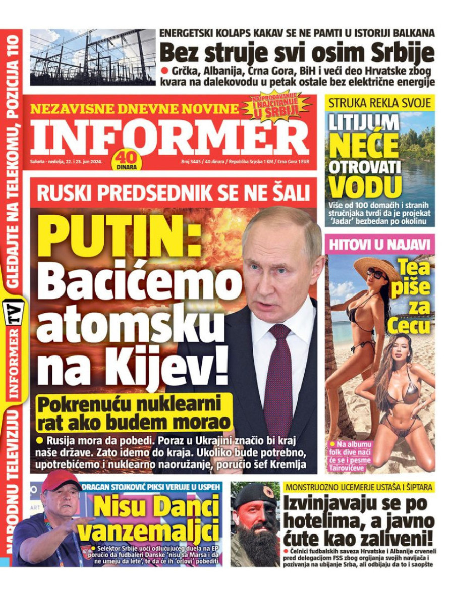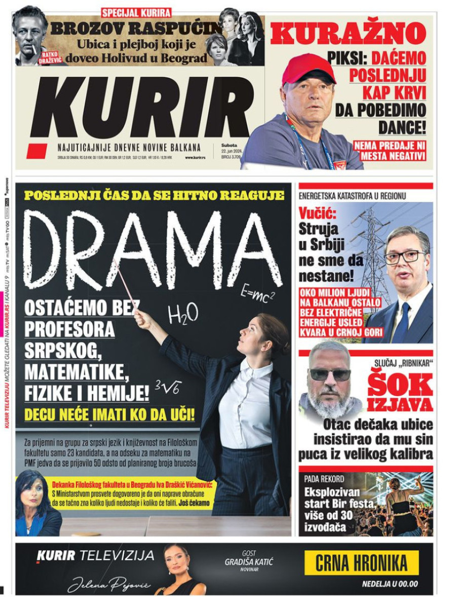 Naslovne strane dnevnih novina: Prelistavanje štampe za 22. jun 2024. godine