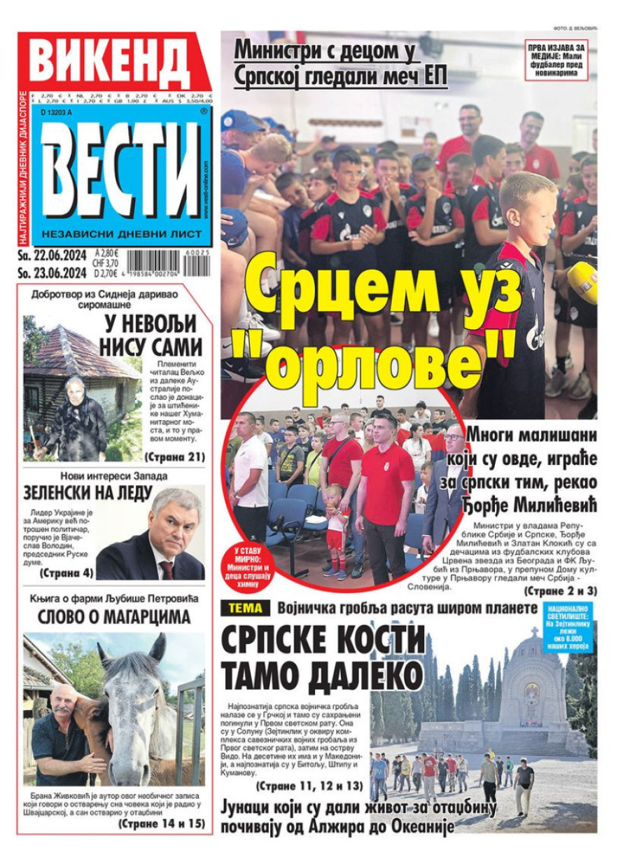 Dnevne novine u Srbiji za nedelju 23. jun 2024. godine, na naslovnim stranama najavljuju brojne aktuelne društveno-političke teme.